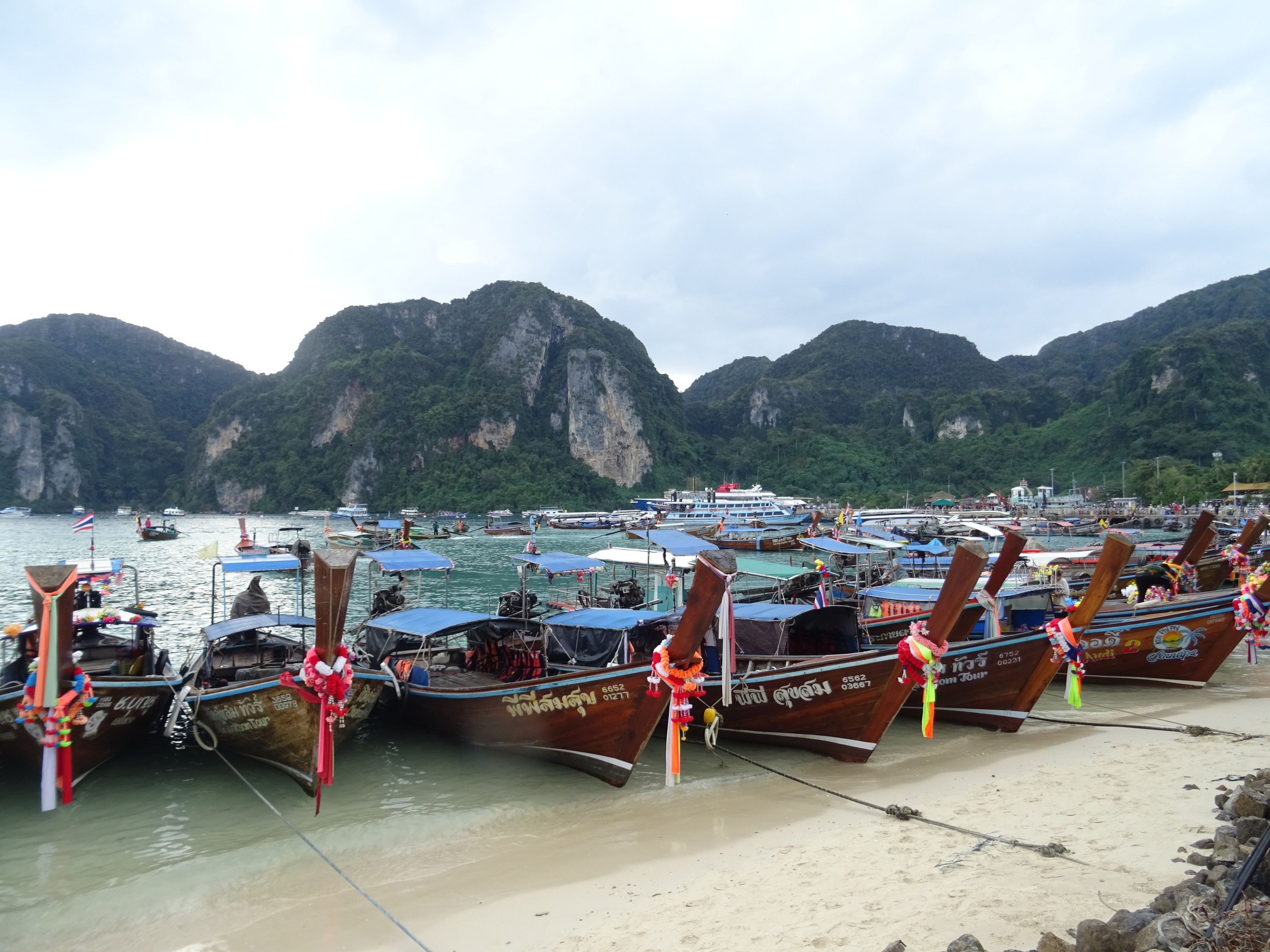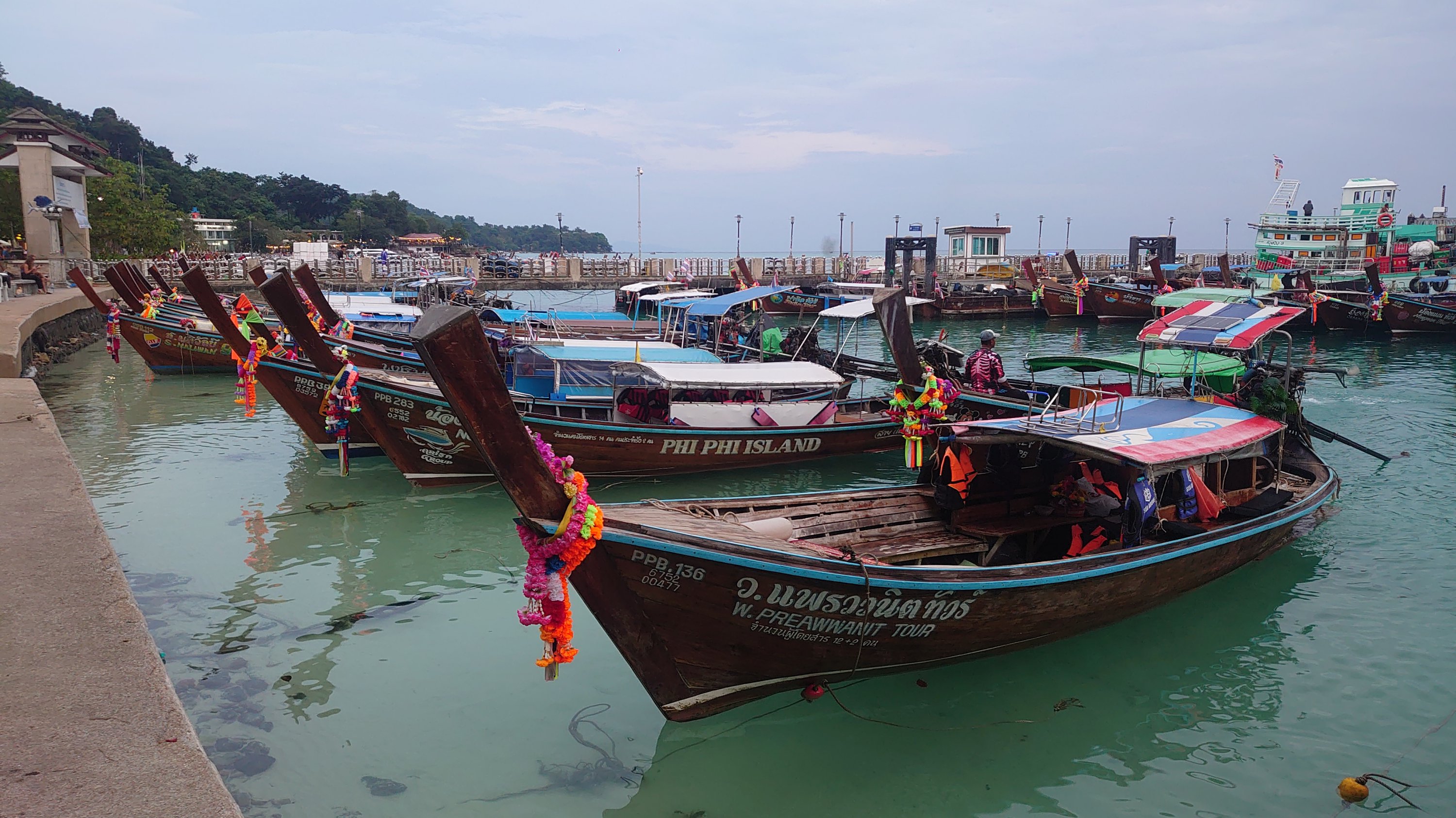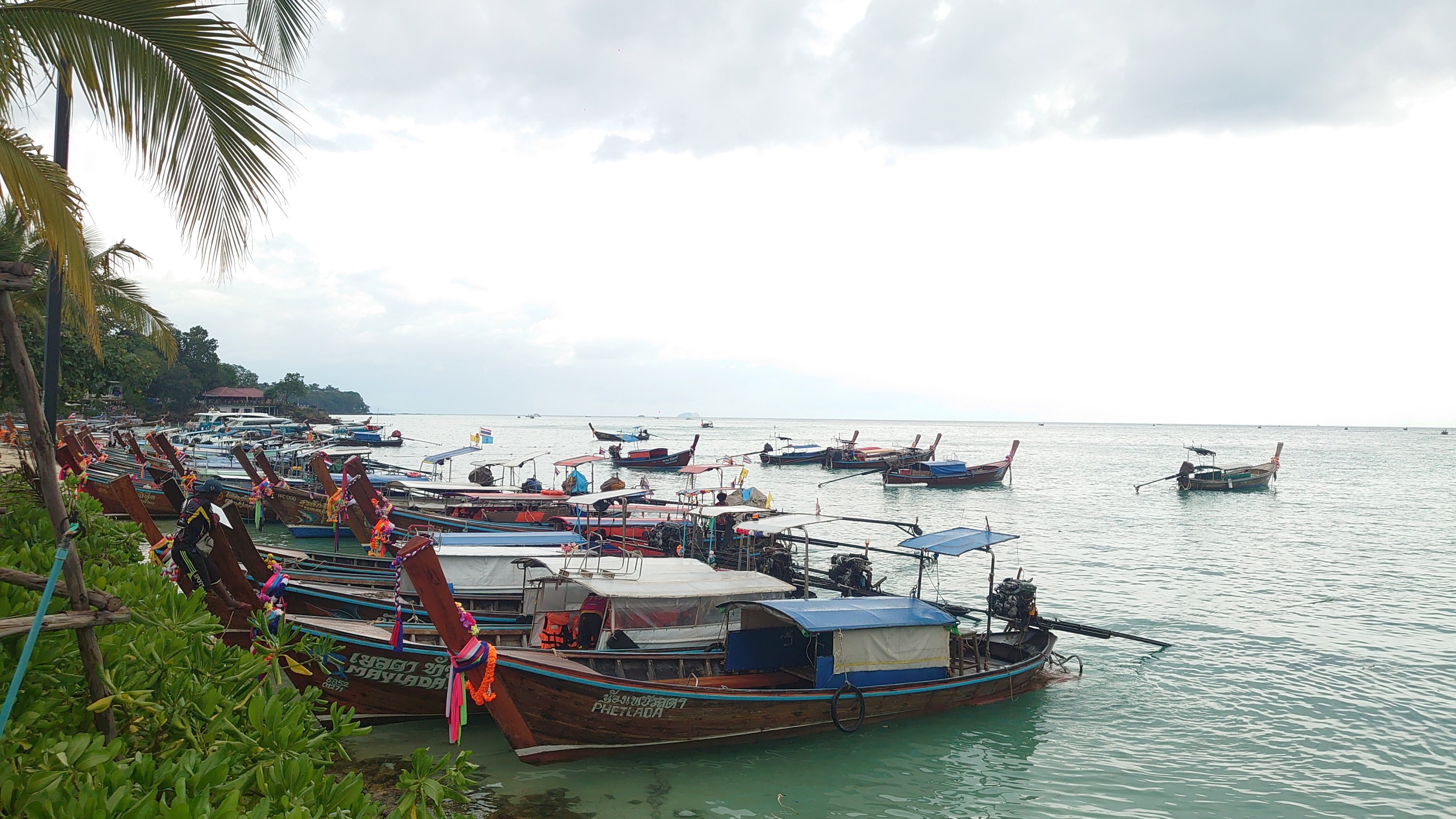 Koh Phi Phi, the incredible island. An island lost in the middle of the ocean in a sublime setting of long-pole boats and a totally offbeat atmosphere. After a night of debauchery on Koh Phi Phi, where girls jump over flaming ropes, take pictures in front of a giant phallus, and where men sniff balloons filled with laughing gas and eat cannabis pizzas, it was time for me to leave the island and head for Phuket…