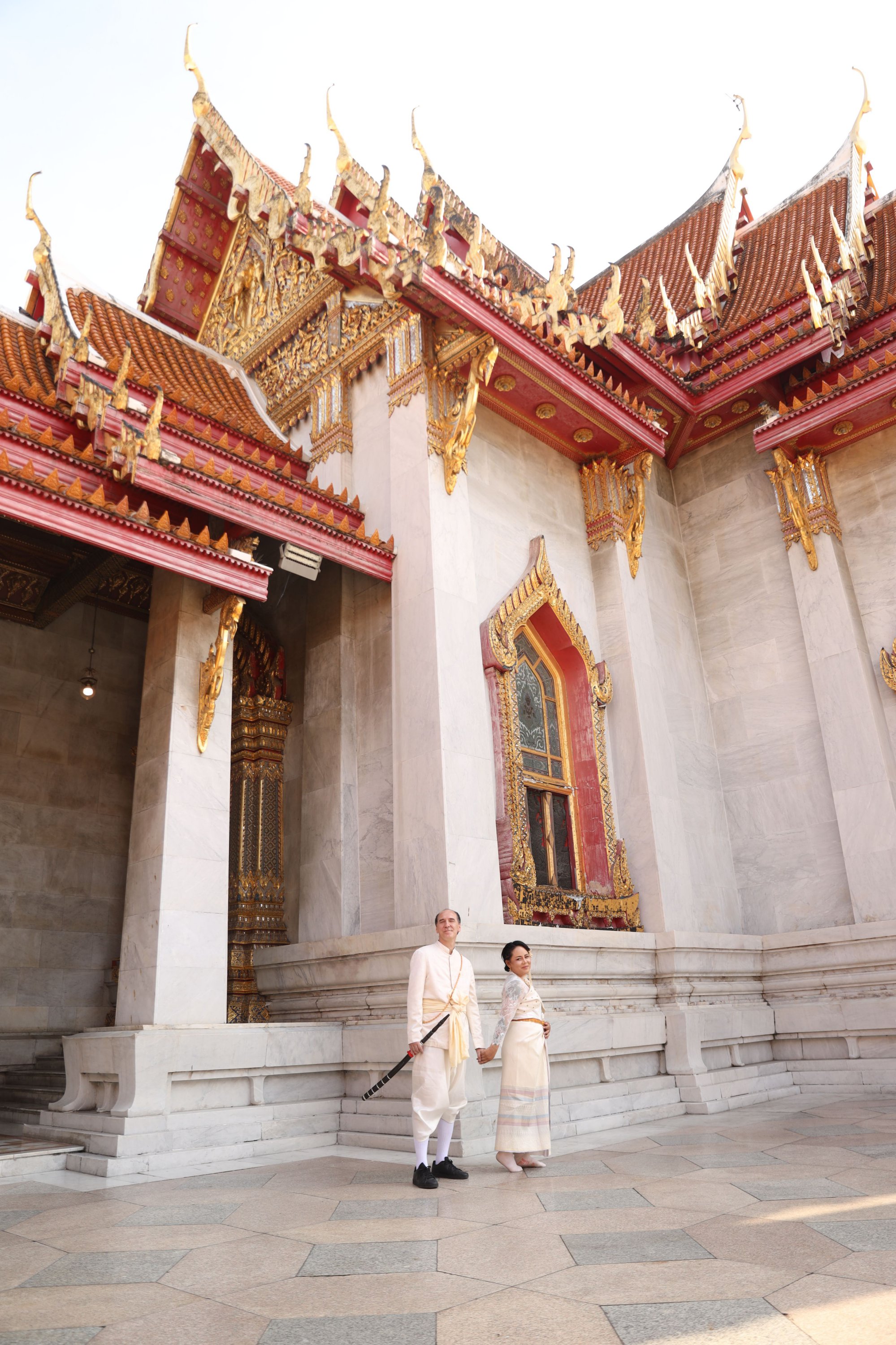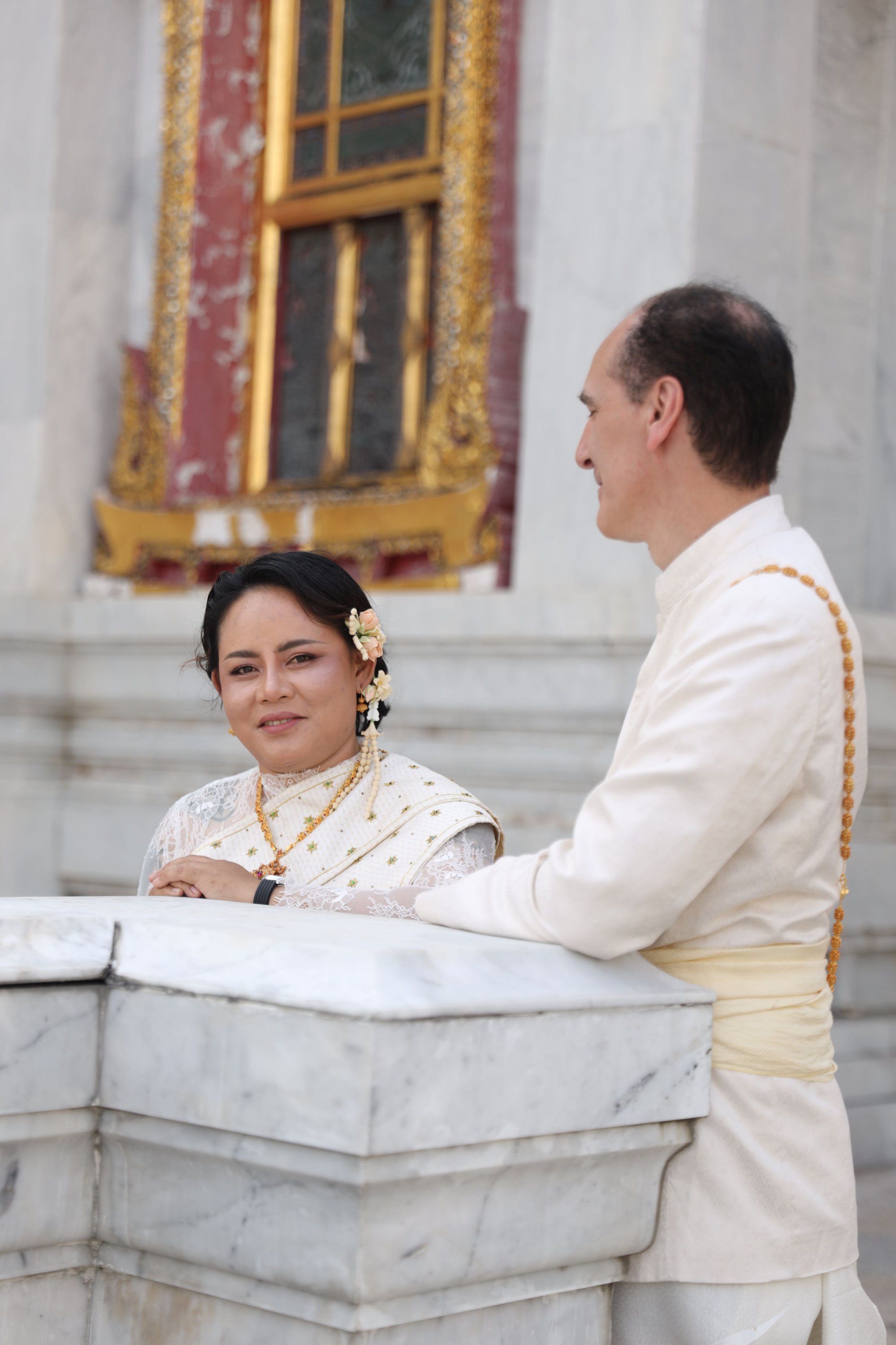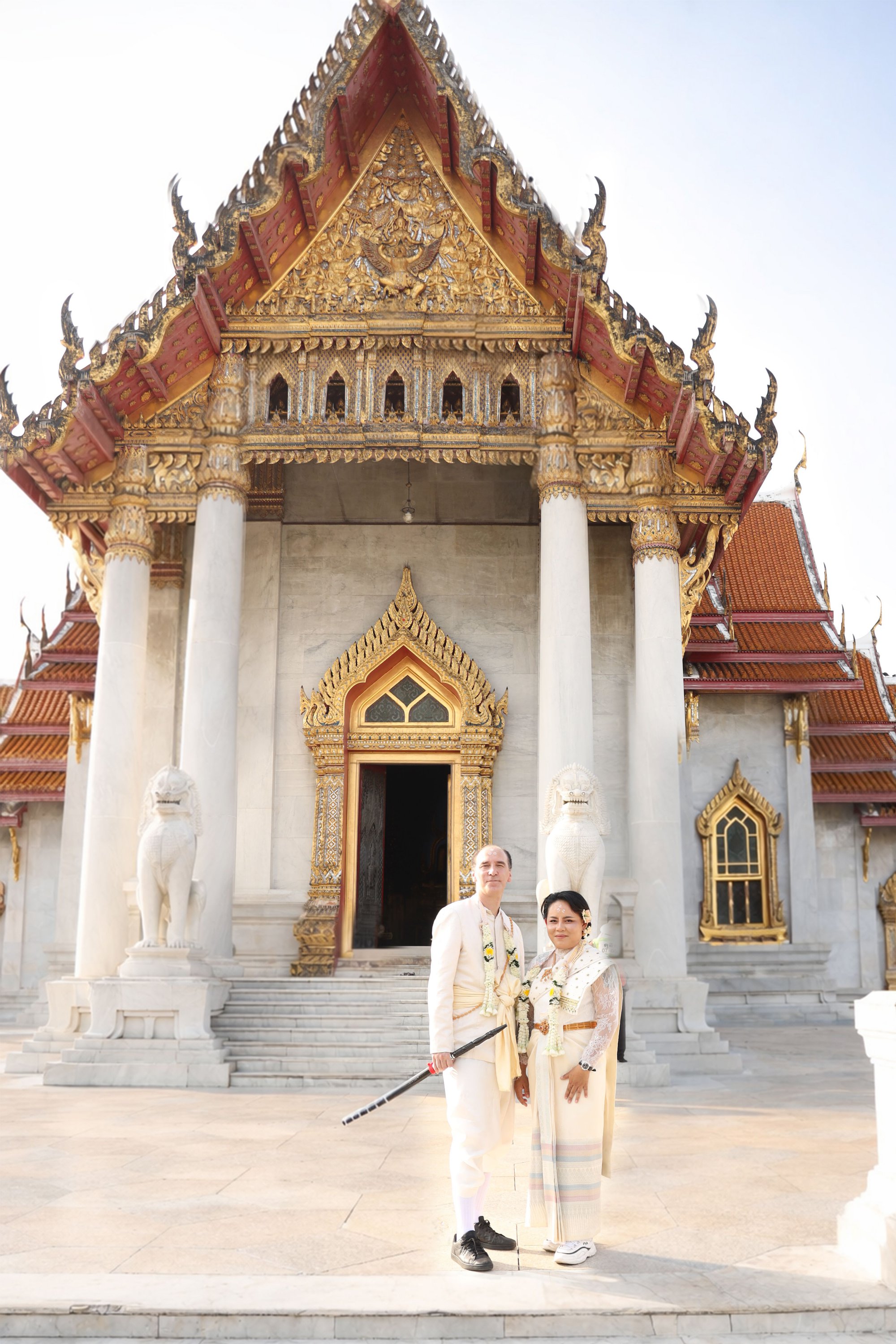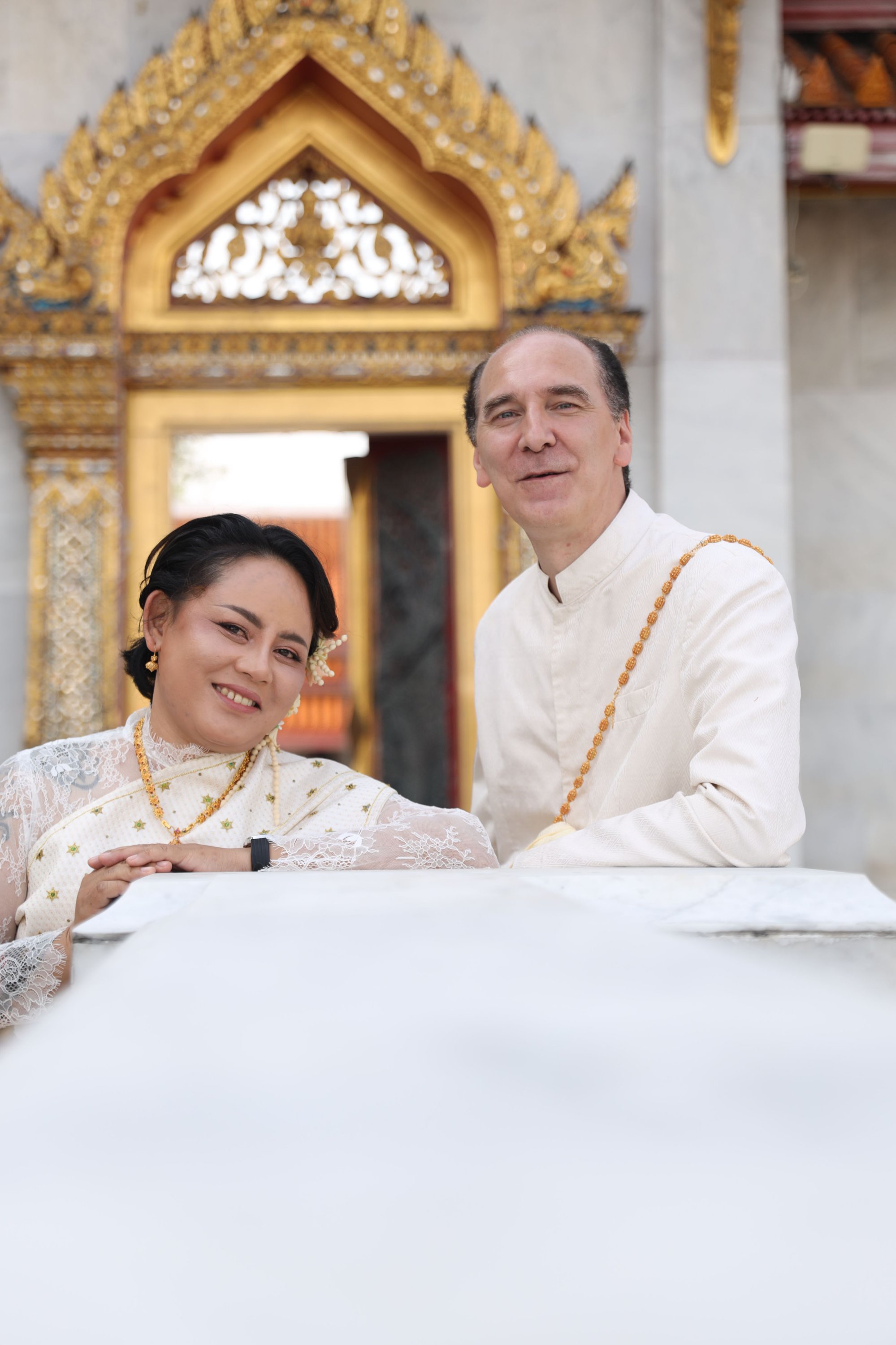 The first wedding in the series (out of 5), here in Thailand, the grand finale of the 5.0 W.A.P. project. A truly magical moment with a genuine traditional ceremony at the Marble Temple in the purest Thai style. A water blessing, candle lighting, and forehead marking to the sound of traditional songs marked this unforgettable day.
