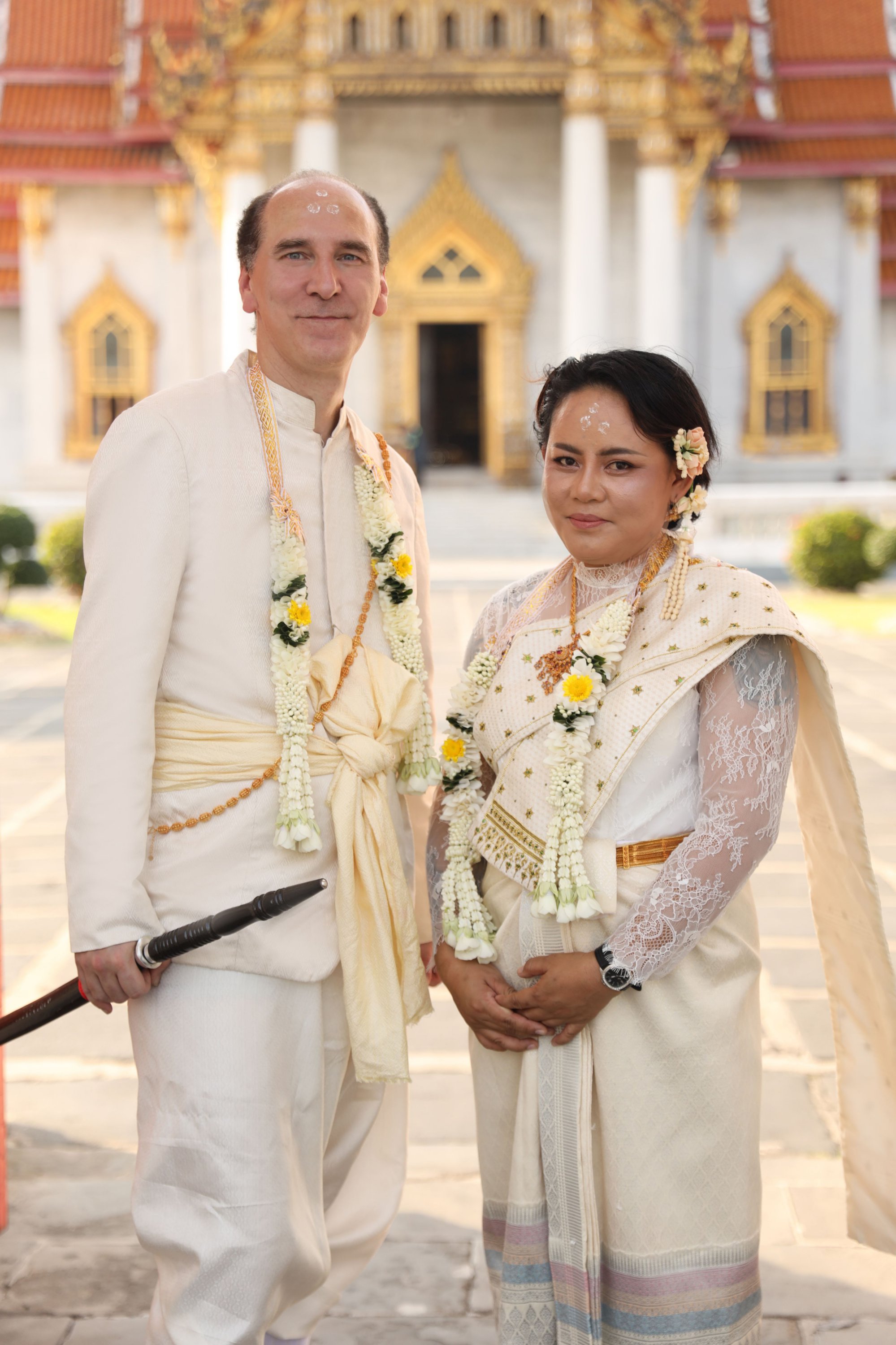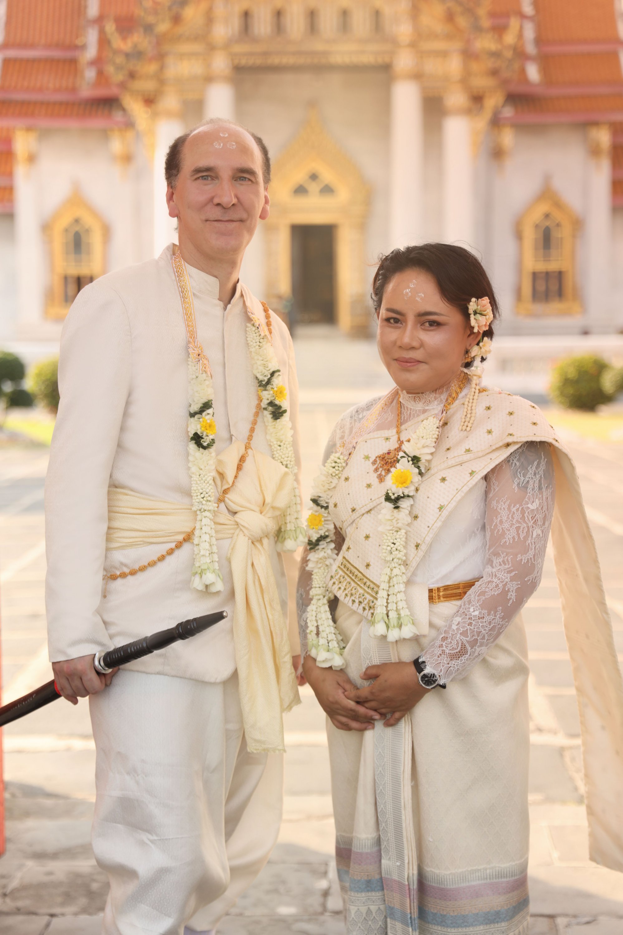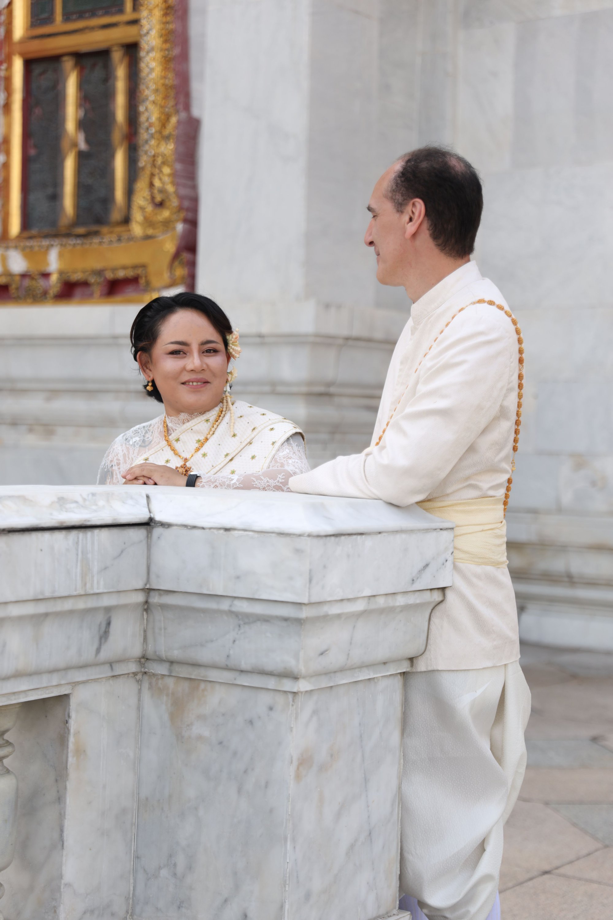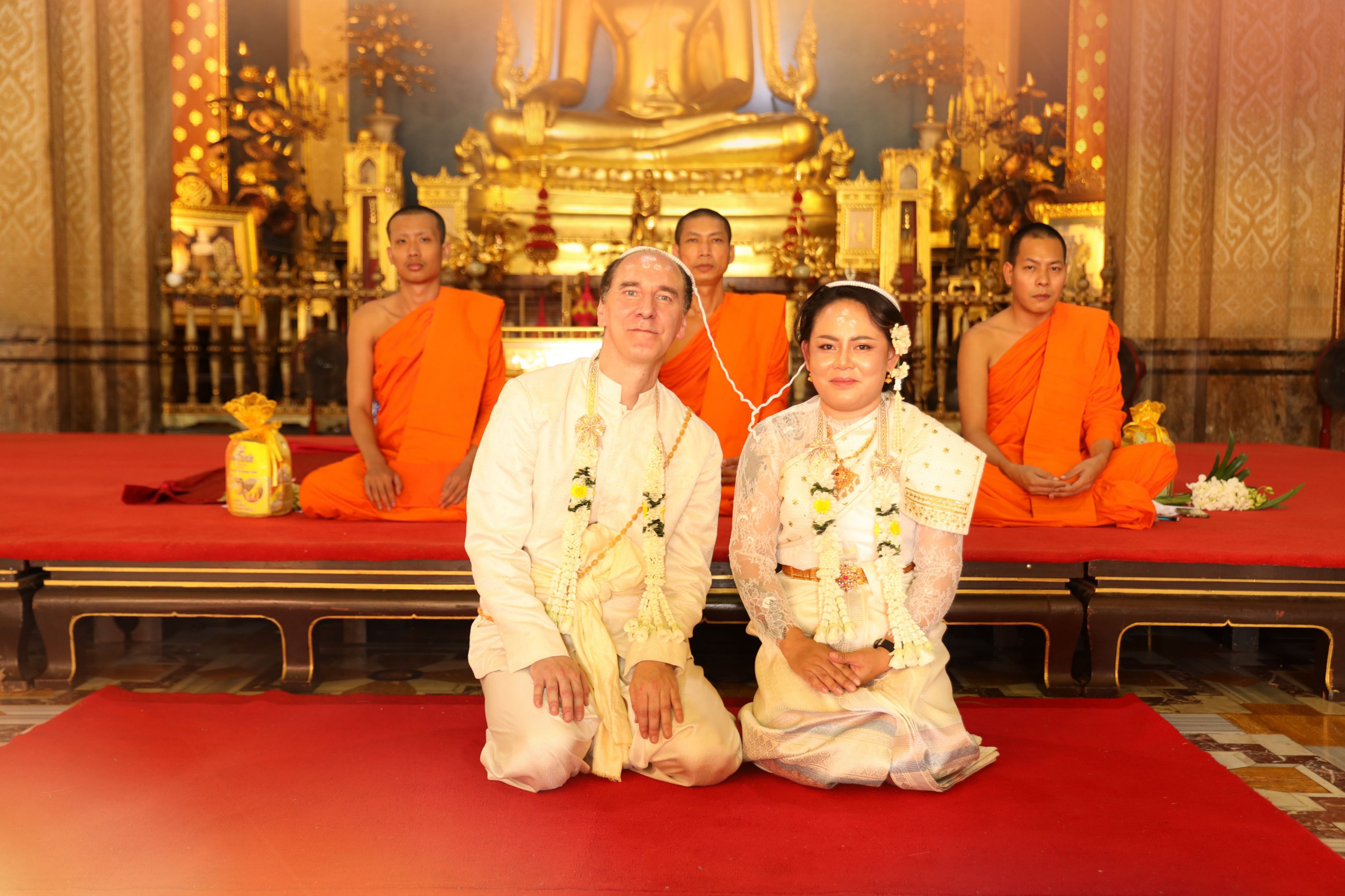 The first wedding in the series (out of 5), here in Thailand, the grand finale of the 5.0 W.A.P. project. A truly magical moment with a genuine traditional ceremony at the Marble Temple in the purest Thai style. A water blessing, candle lighting, and forehead marking to the sound of traditional songs marked this unforgettable day.