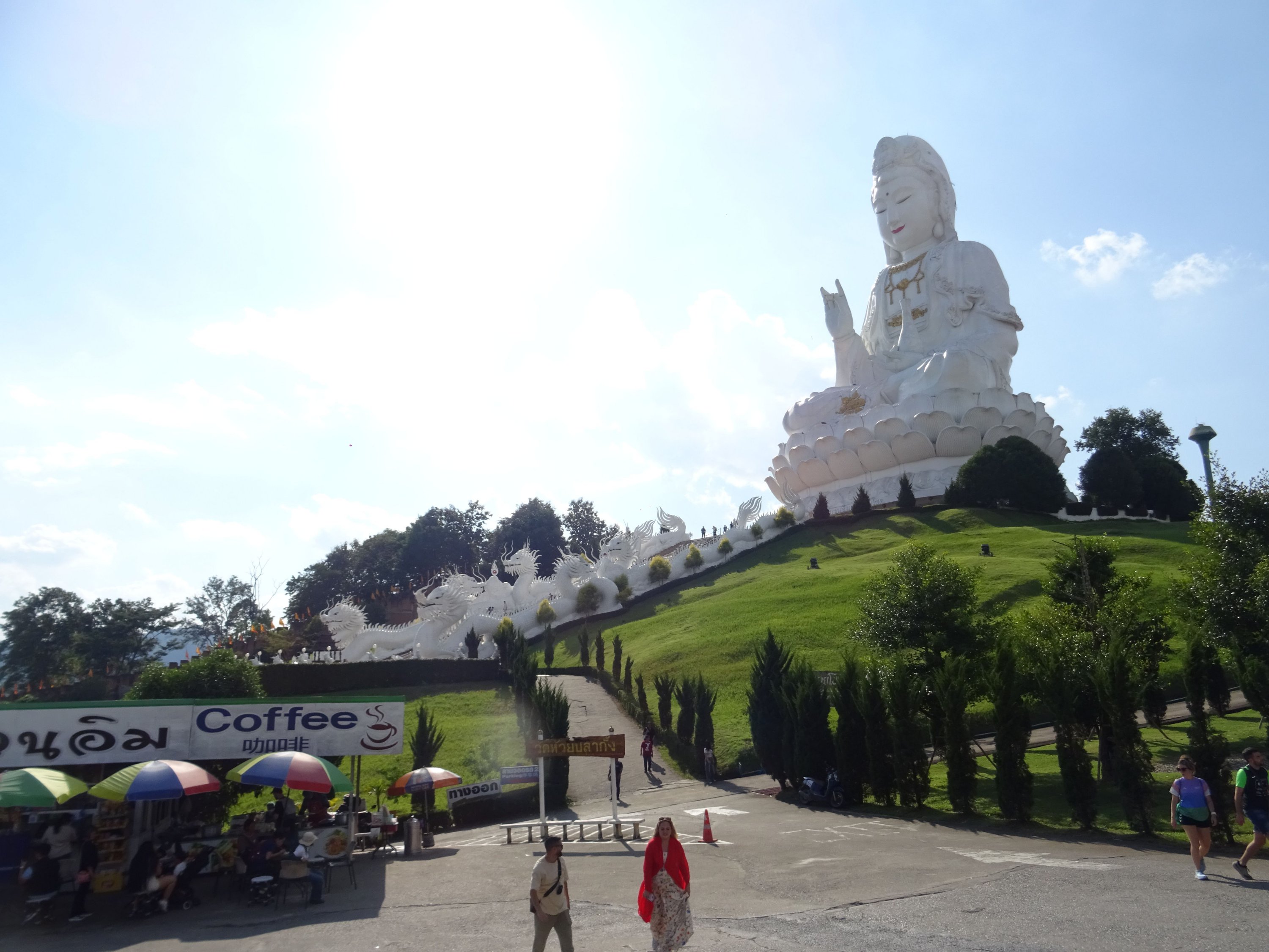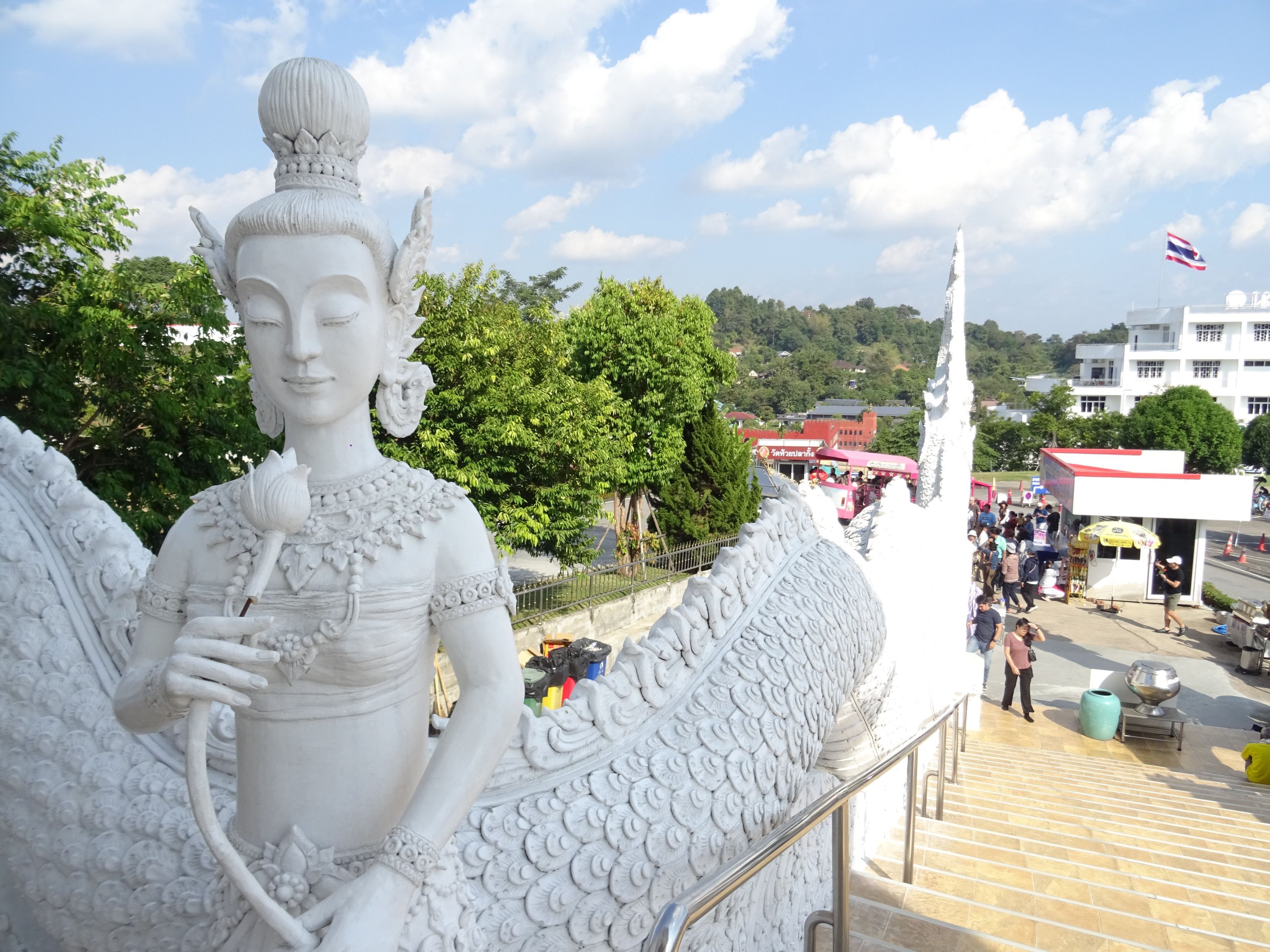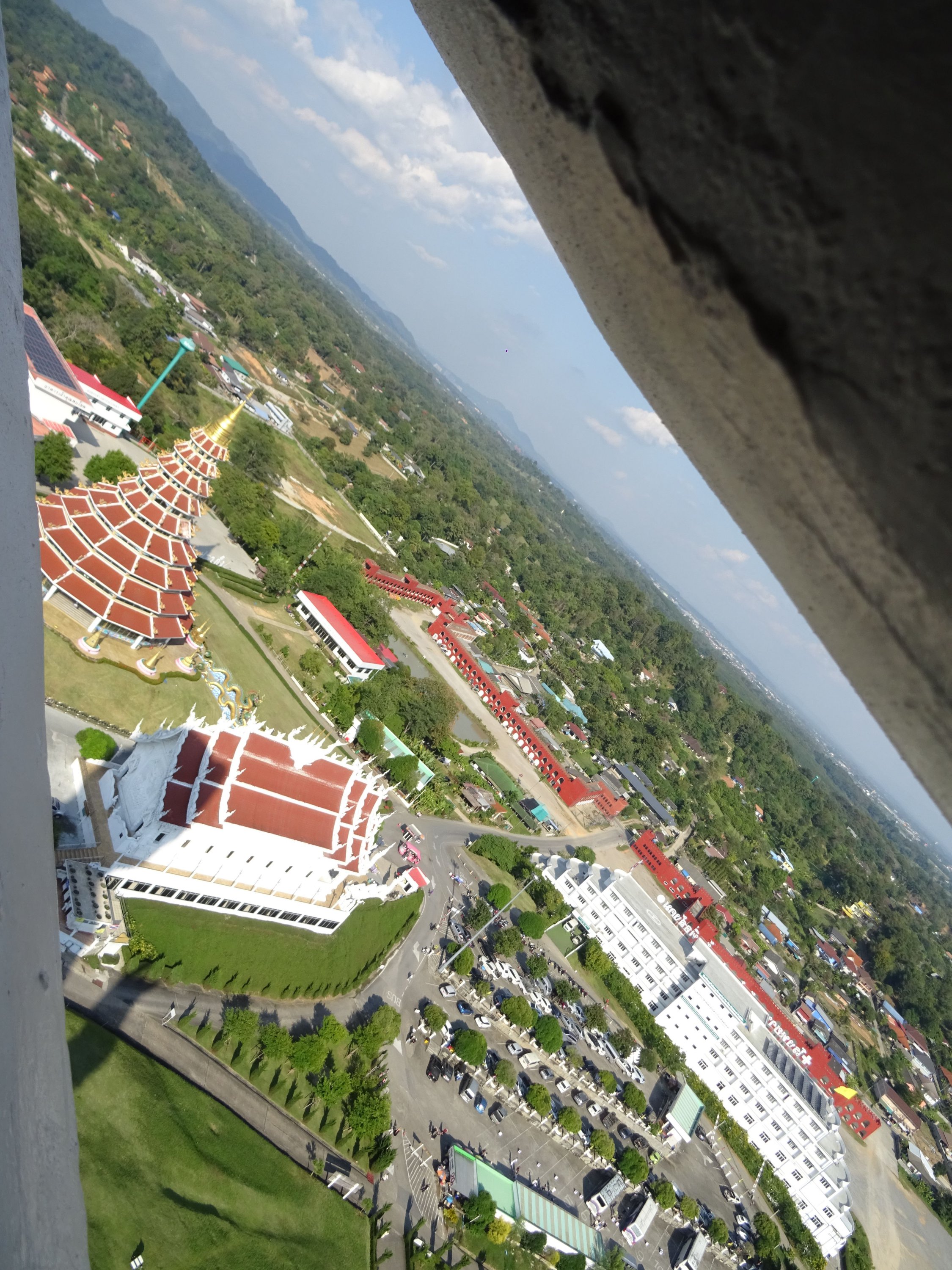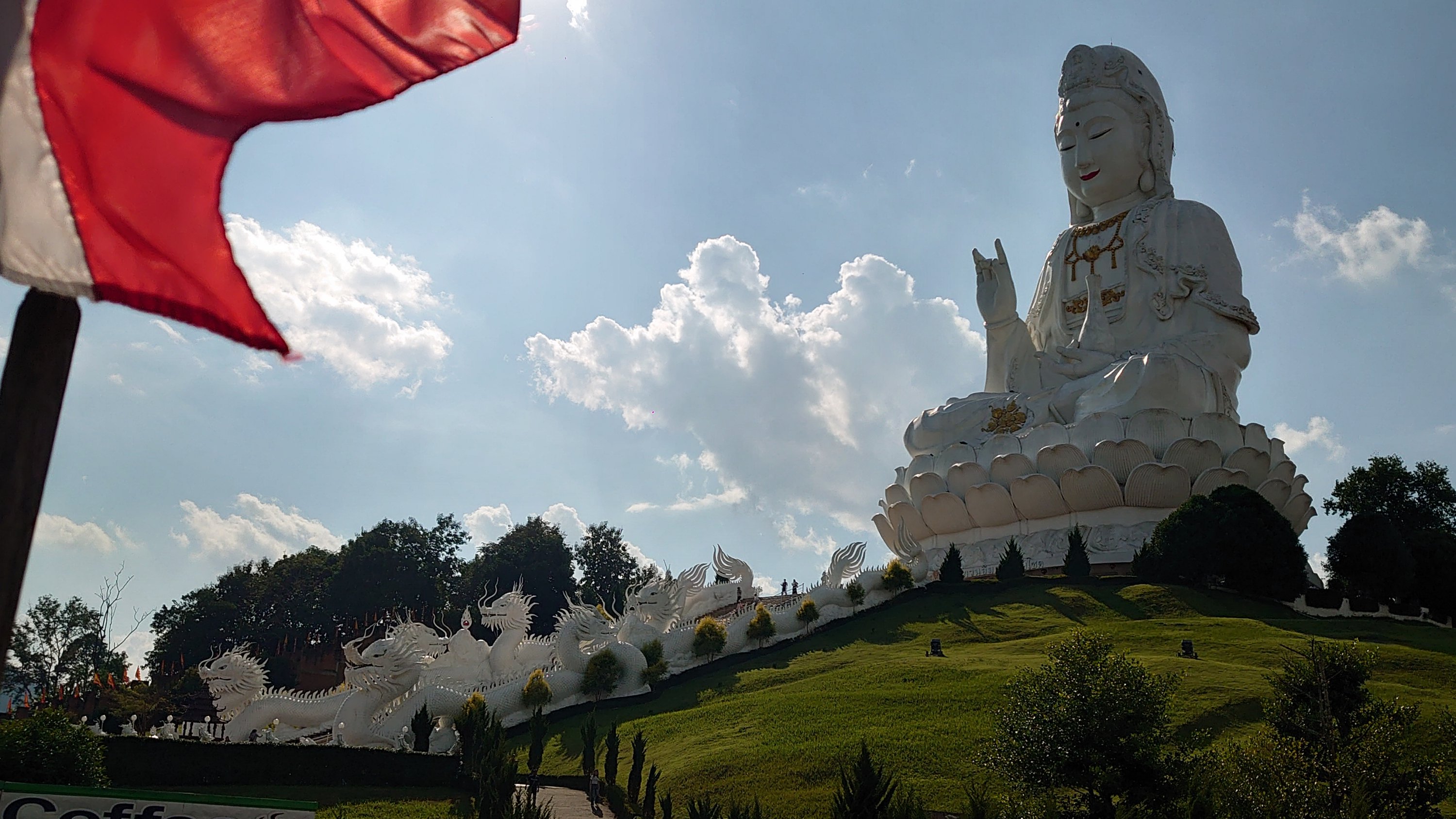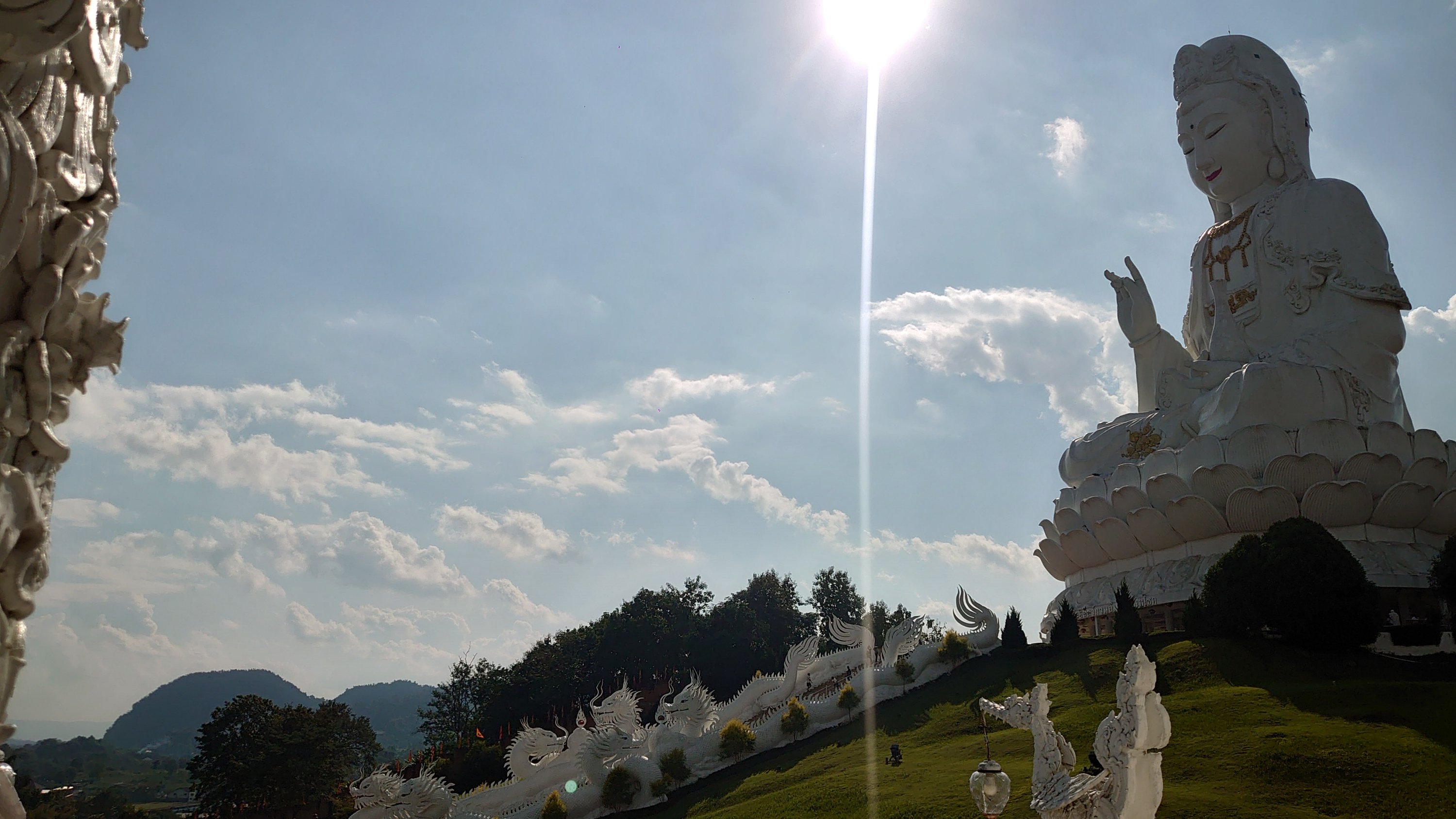 with seven meters of straw, the GPS malfunctioning (I had to pull out the map!), and driving on the left, everything was just fine! Having already visited Chiang Rai two years prior, this time I ventured outside the city and visited the three mountain temples. One of them particularly moved me; I felt so peaceful there. I stayed for a while, and when I tried to film the atmosphere, the statue started flashing! (No problem with the camera). It reminds me of the Buddha curse I experienced during my trip to China (the 2016 CRIC China Russia India Cambodia project, which you read about previously). I then went up to the 26th floor, inside the Buddha itself, to look through its eye! Then I headed north towards the Burmese border to see the northernmost point of Thailand, and even though I couldn't go in, it was impressive to see the constant coming and going there (the Golden Triangle area).
