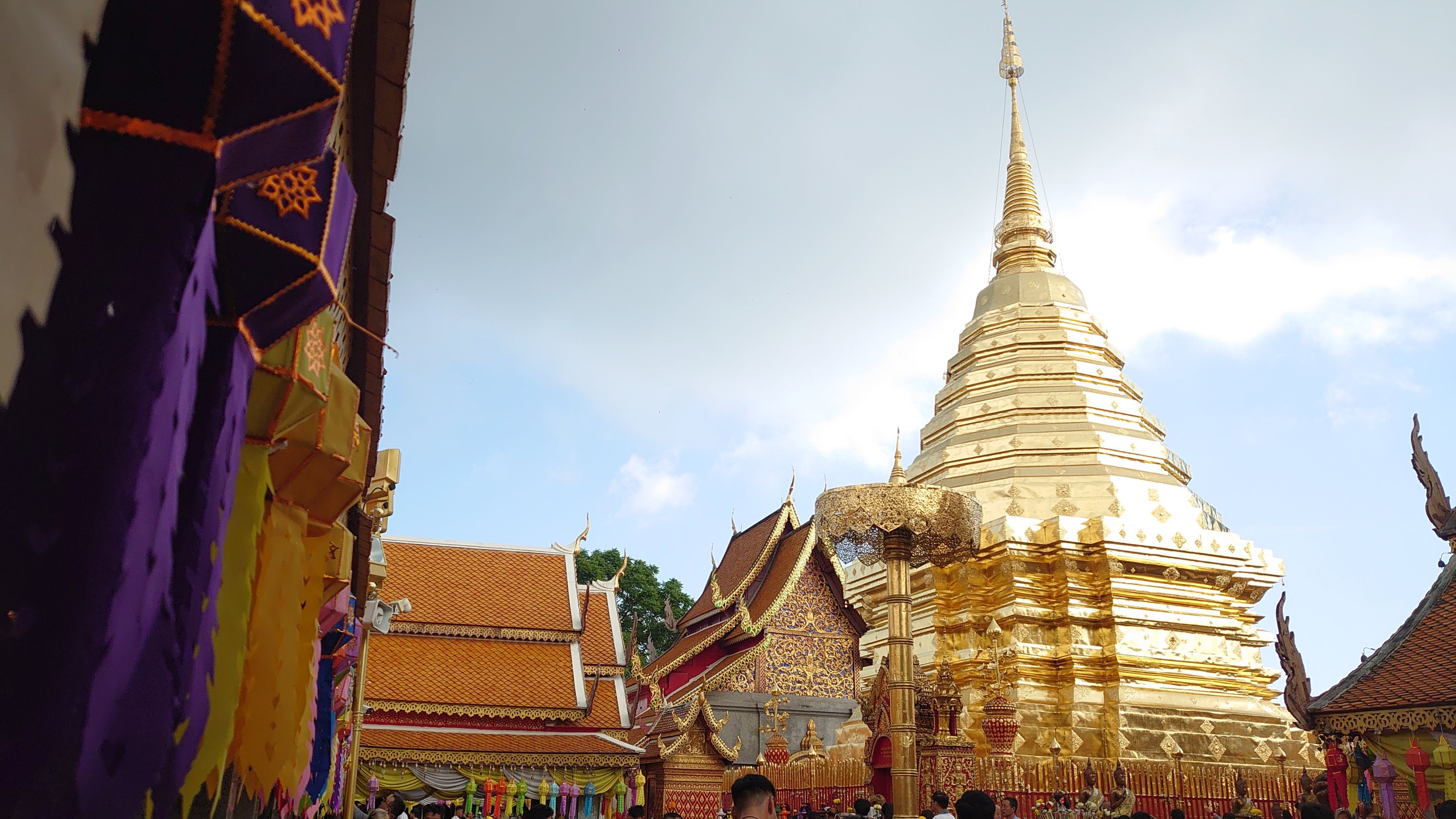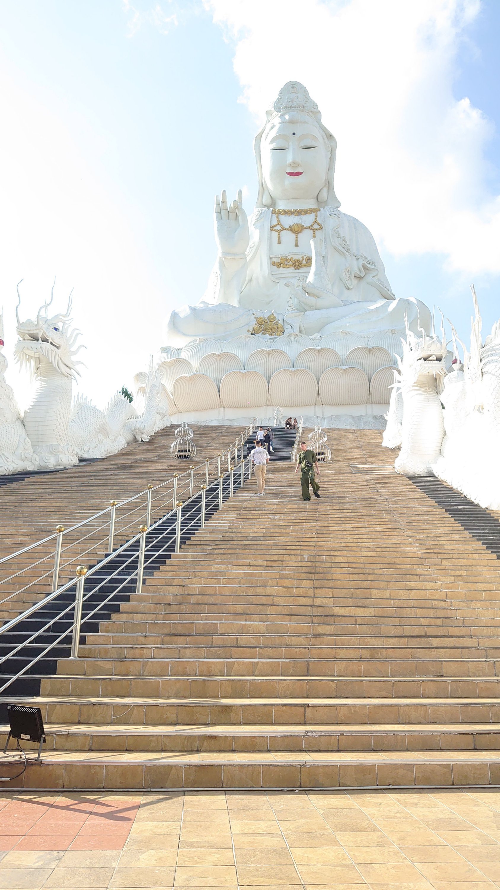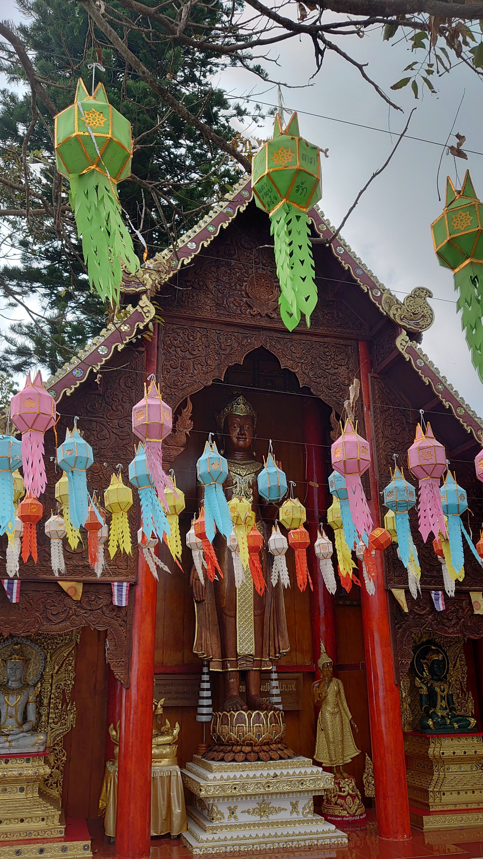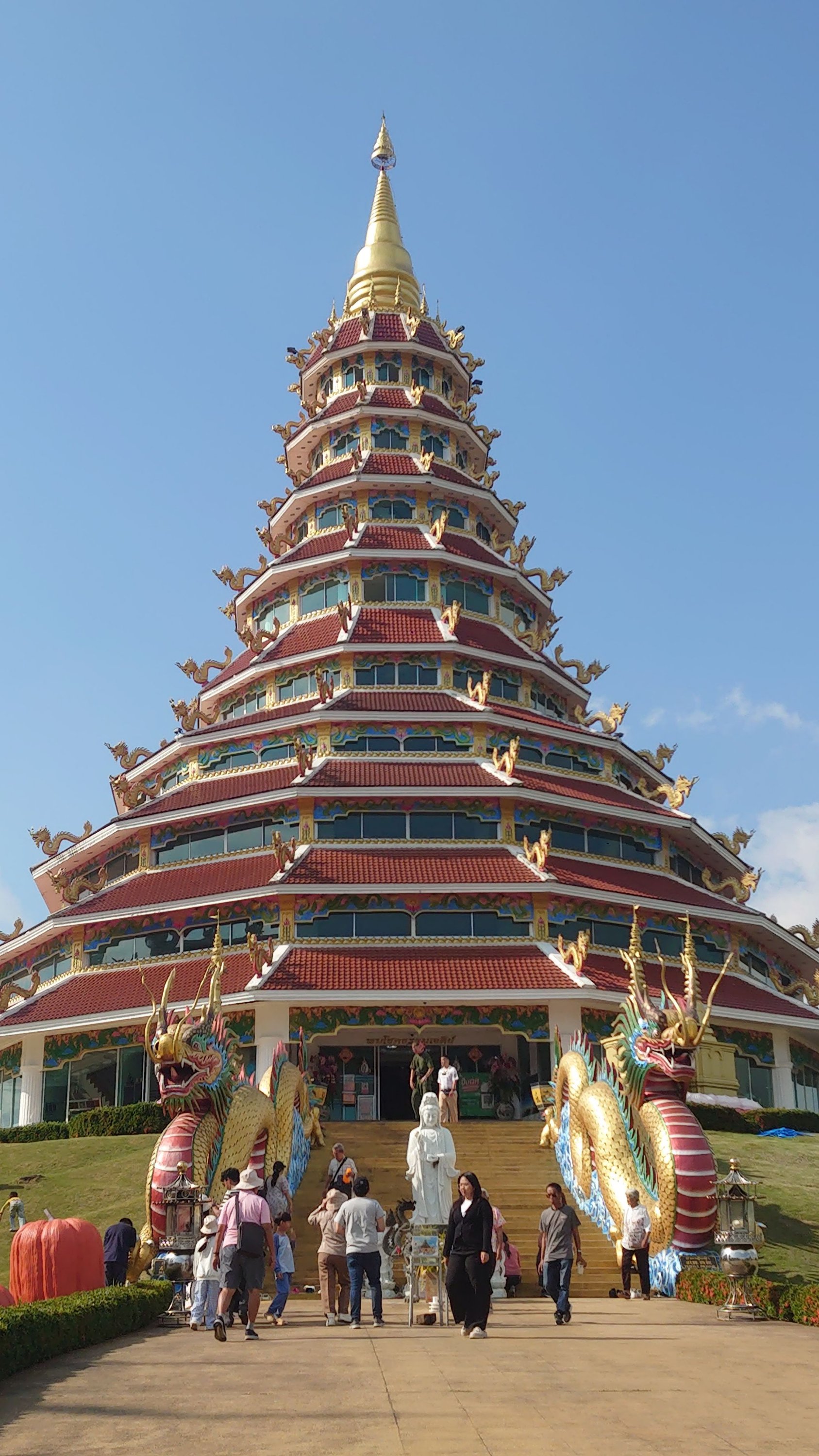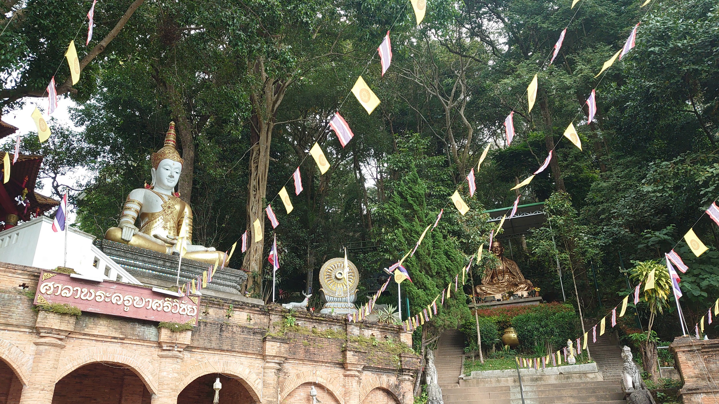 with seven meters of straw, the GPS malfunctioning (I had to pull out the map!), and driving on the left, everything was just fine! Having already visited Chiang Rai two years prior, this time I ventured outside the city and visited the three mountain temples. One of them particularly moved me; I felt so peaceful there. I stayed for a while, and when I tried to film the atmosphere, the statue started flashing! (No problem with the camera). It reminds me of the Buddha curse I experienced during my trip to China (the 2016 CRIC China Russia India Cambodia project, which you read about previously). I then went up to the 26th floor, inside the Buddha itself, to look through its eye! Then I headed north towards the Burmese border to see the northernmost point of Thailand, and even though I couldn't go in, it was impressive to see the constant coming and going there (the Golden Triangle area).