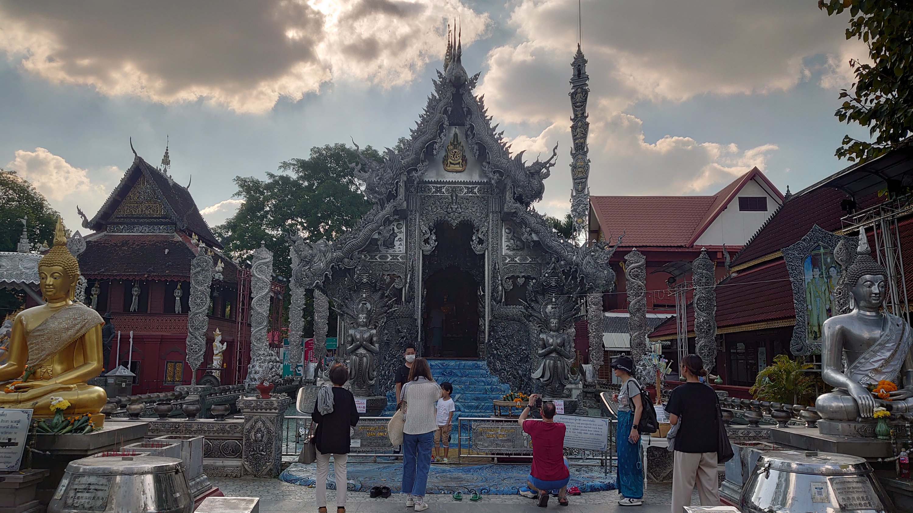 Back to Chiang Mai to rediscover the calm and serenity of northern Thailand, its traditional side, and thankfully, the small number of "farang" (tourists). A visit to new temples, such as the Silver Temple, forbidden to women due to an ancient, forgotten belief, and the end of the day in a large shopping mall.
