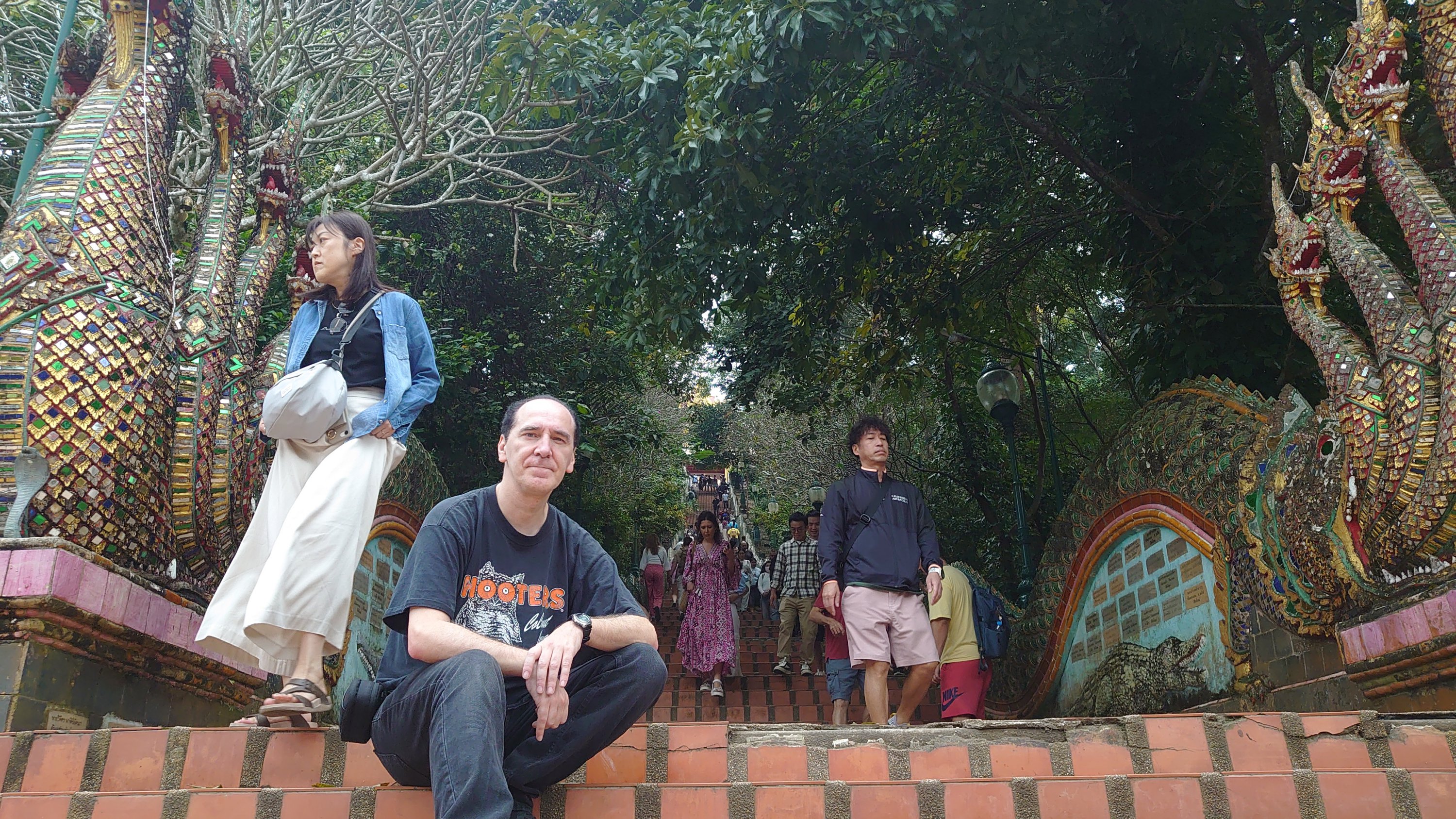 Having already visited Chiang Rai two years prior, this time I ventured outside the city and visited the three mountain temples. One of them particularly moved me; I felt so peaceful there. I stayed for a while, and when I tried to film the atmosphere, the statue started flashing! (No problem with the camera). It reminds me of the Buddha curse I experienced during my trip to China (the 2016 CRIC China Russia India Cambodia project, which you read about previously). I then went up to the 26th floor, inside the Buddha itself, to look through its eye!