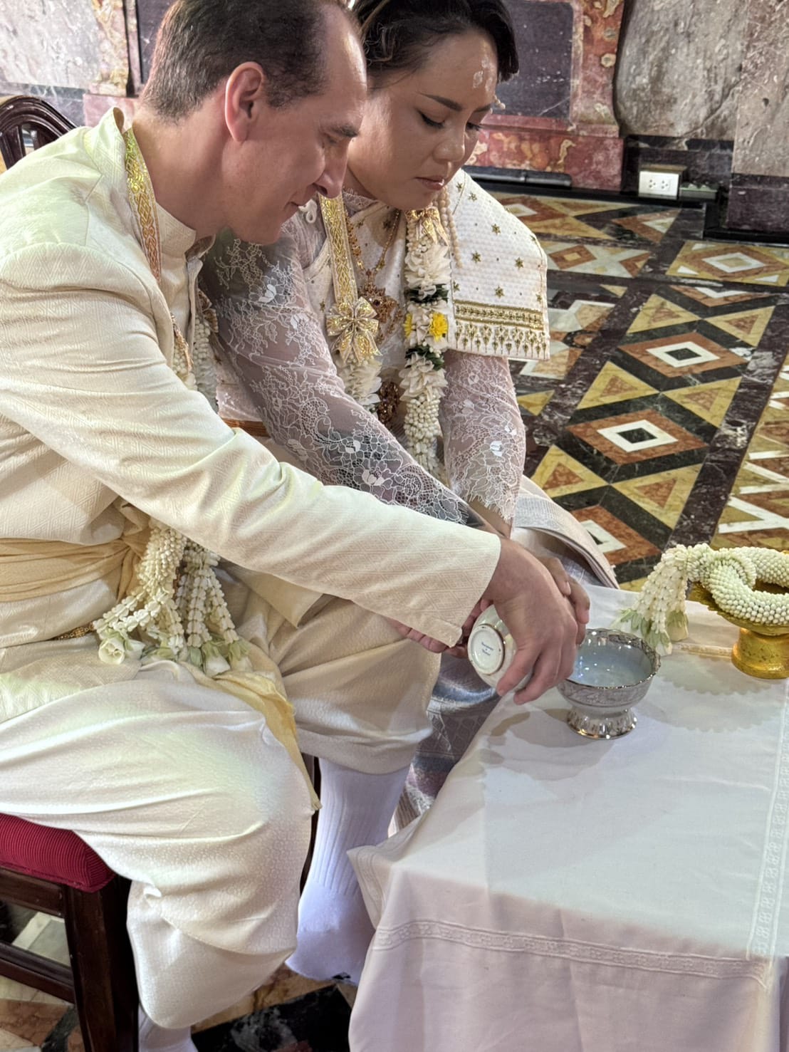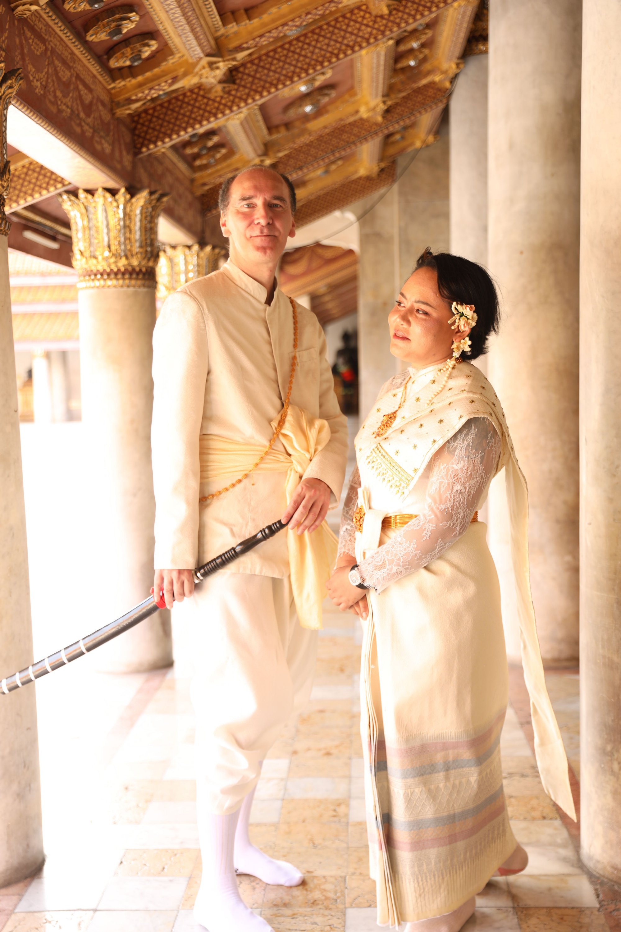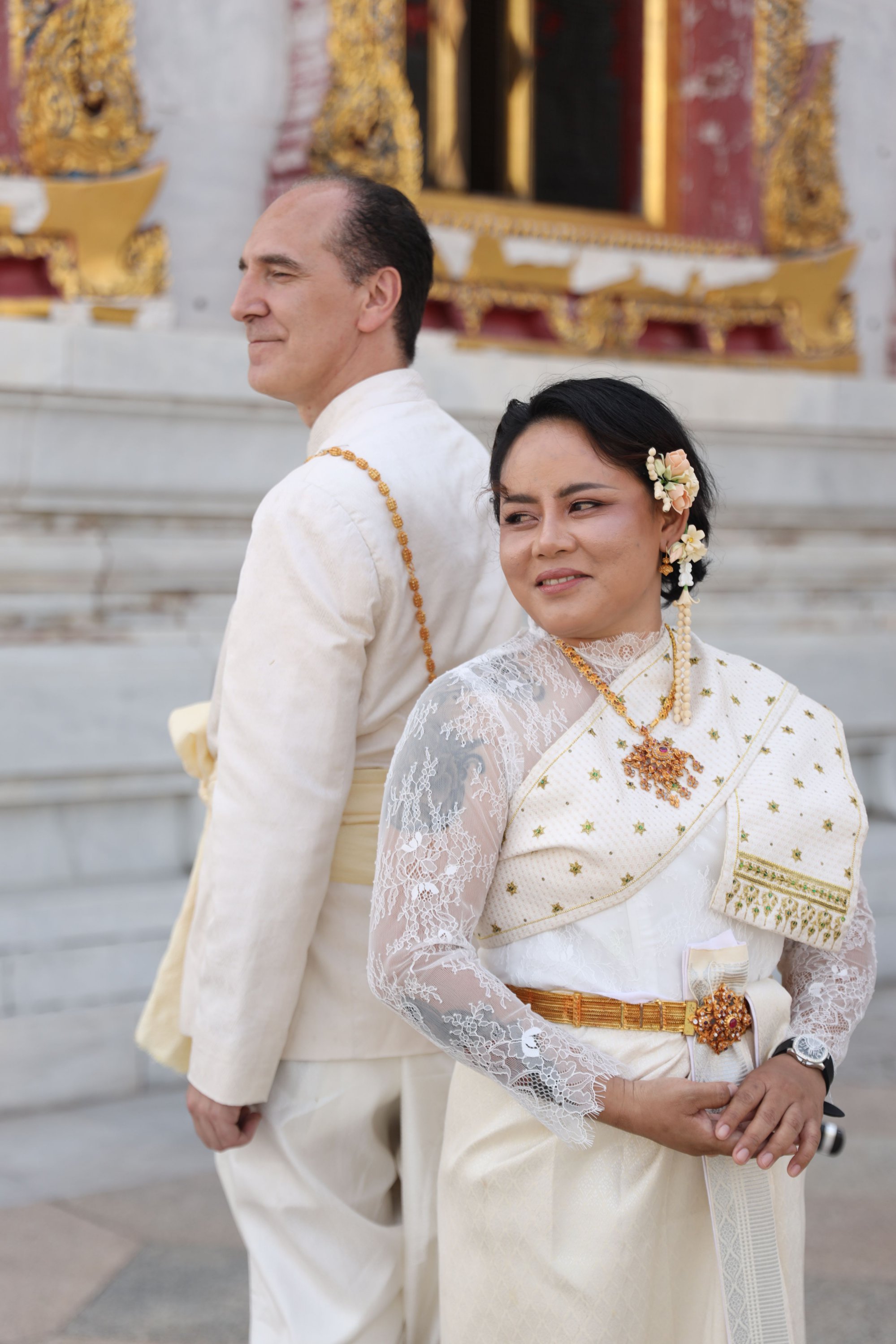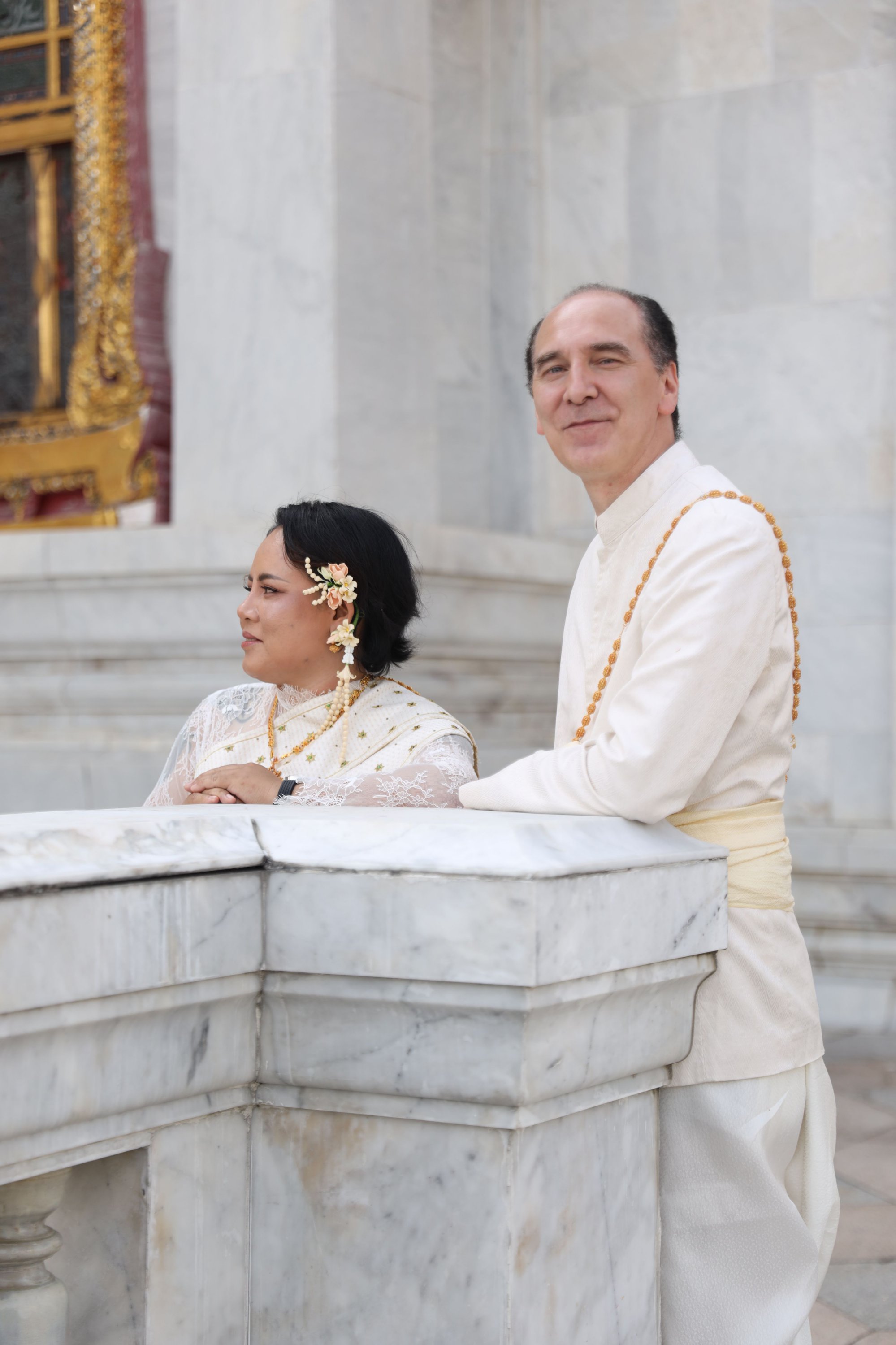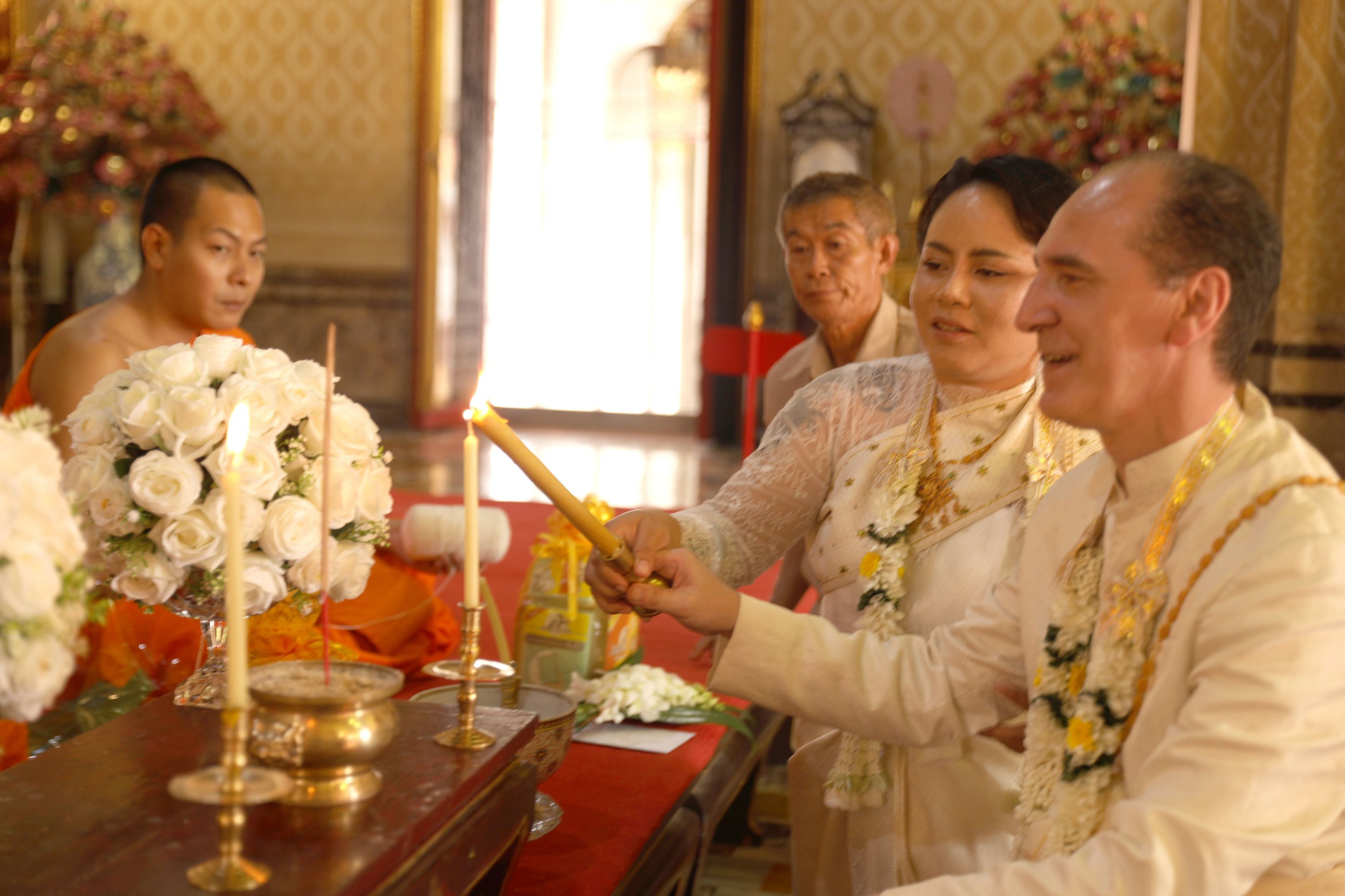 Premier mariage de la série (sur 5), ici, en Thaïlande, bouquet final du projet 5.0 W.A.P. Un moment plus que magique avec une véritable cérémonie traditionnelle au temple de marbre dans le plus pur style thaïlandais. Bénédiction à l’eau, allumage de bougie, et marquage du front sur fond de chants traditionnels marquèrent cette journée inoubliable.