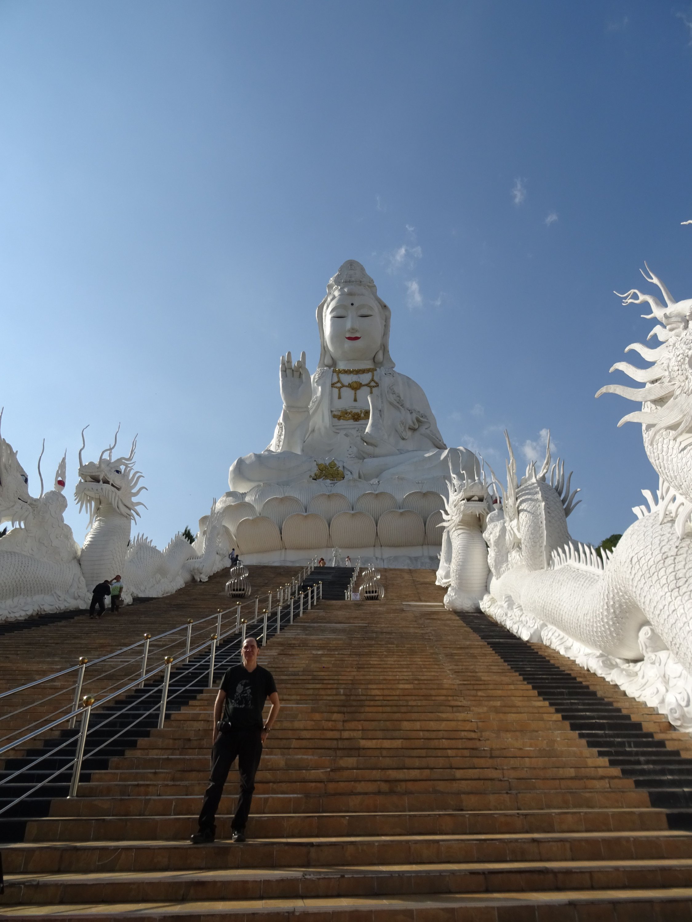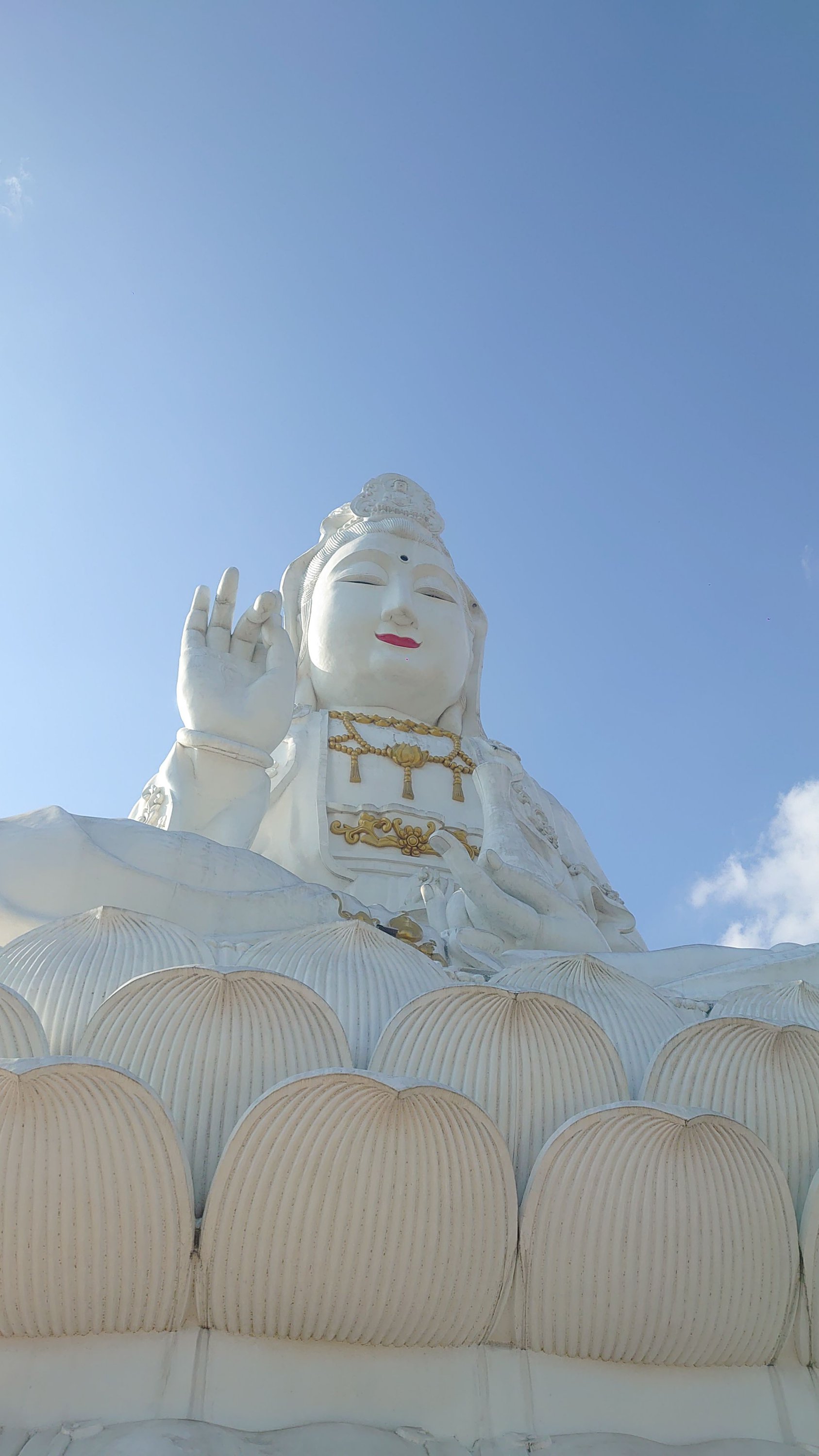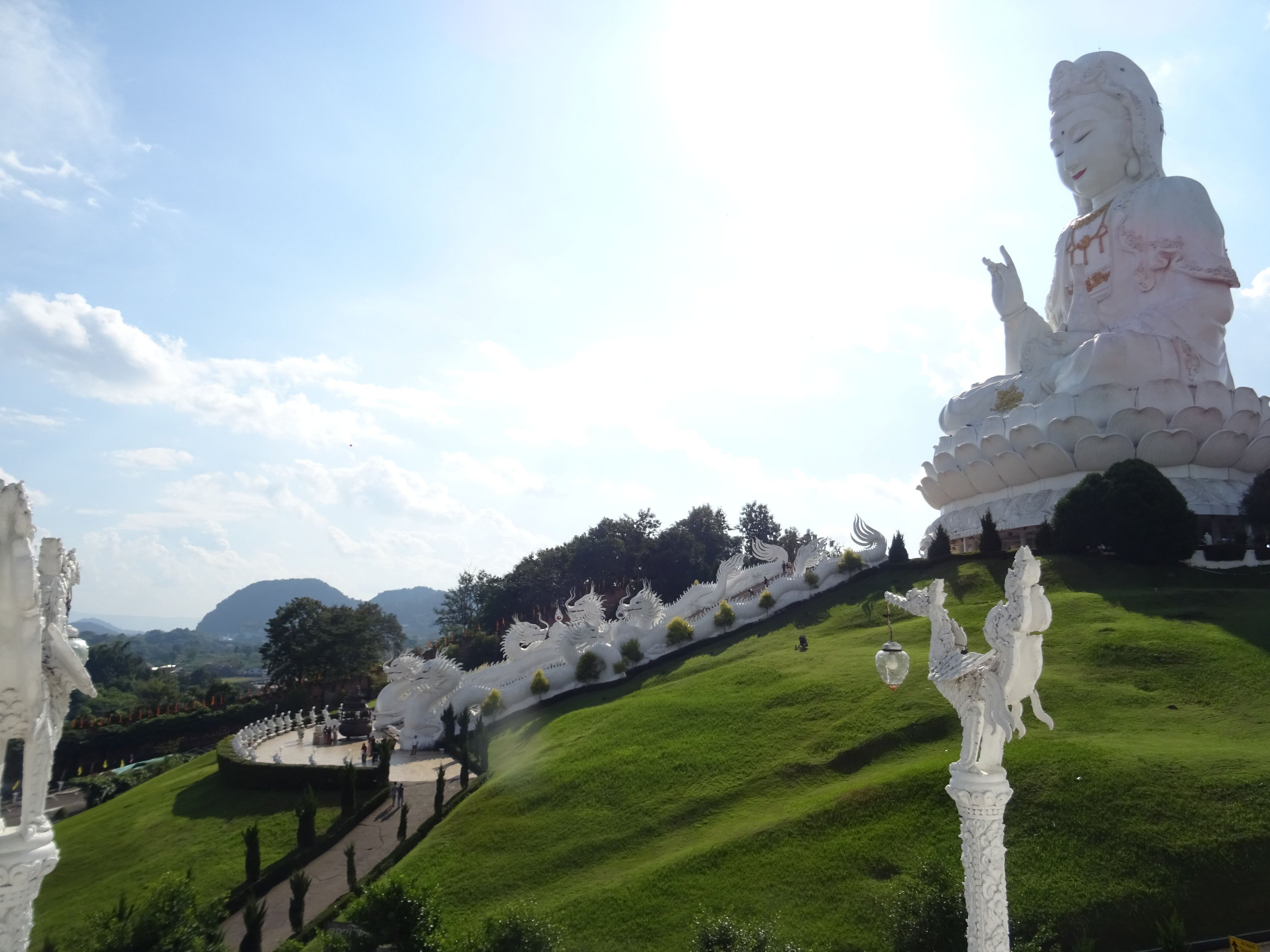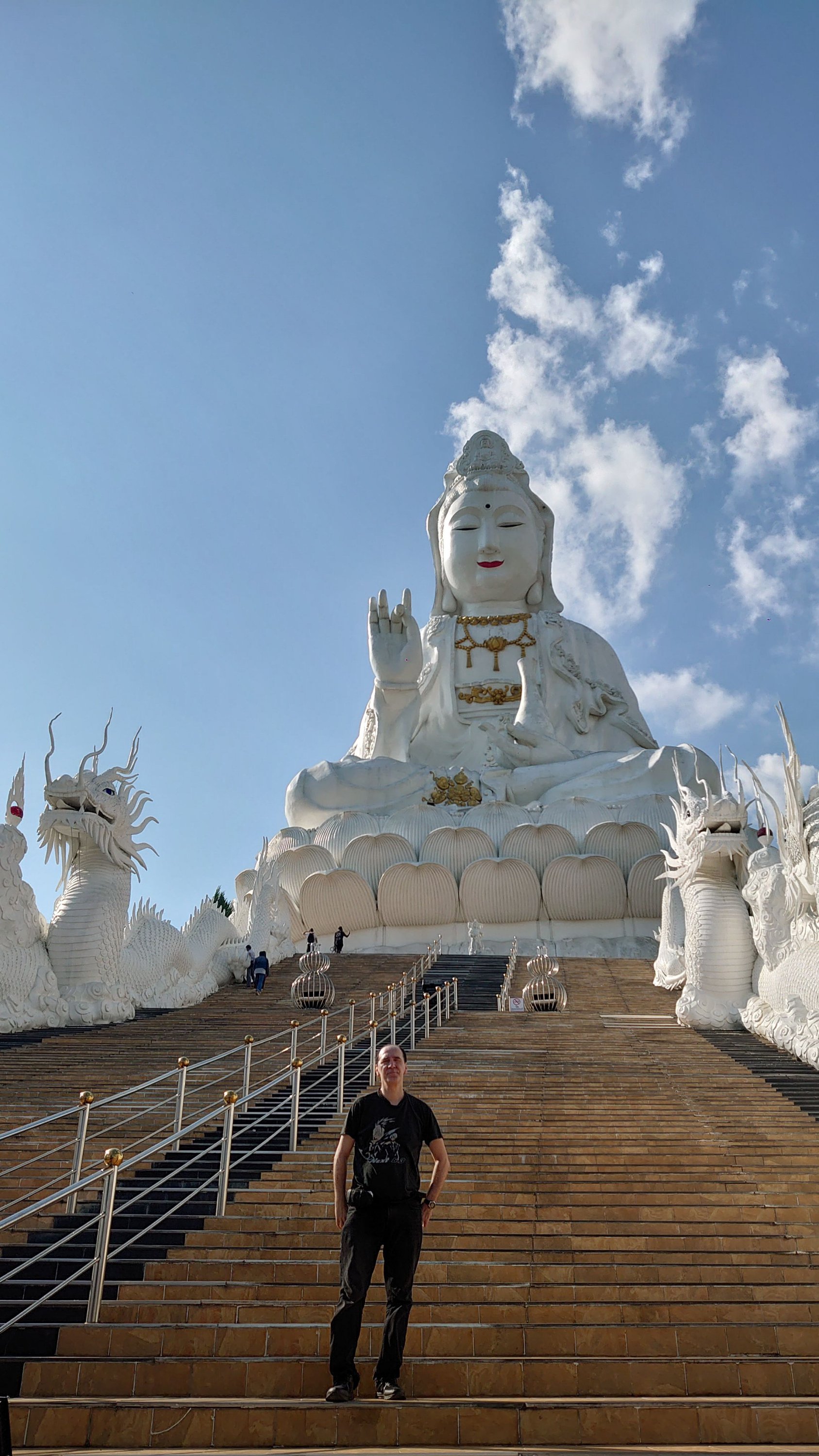 Ayant déjà visité Chiang Rai deux ans auparavant, je suis cette fois-ci sorti de la ville et visité les trois temples de la montagne. L'un deux m'a particulièrement marqué tellement je m'y sentais apaisé. J'y suis resté un moment et lorsque j'ai voulu faire une vidéo de l'ambiance la statue s'est mise à clignoter ! (Aucun souci avec l'appareil photo). Ça me rappelle la malédiction du bouddha que j'avais subi lors de mon voyage en Chine (projet CRIC Chine Russie Inde Cambodge de 2016 que vous avez découvert précédemment). Je suis ensuite monté au 26eme étage à l'intérieur même du bouddha pour regarder au travers de son oeil !