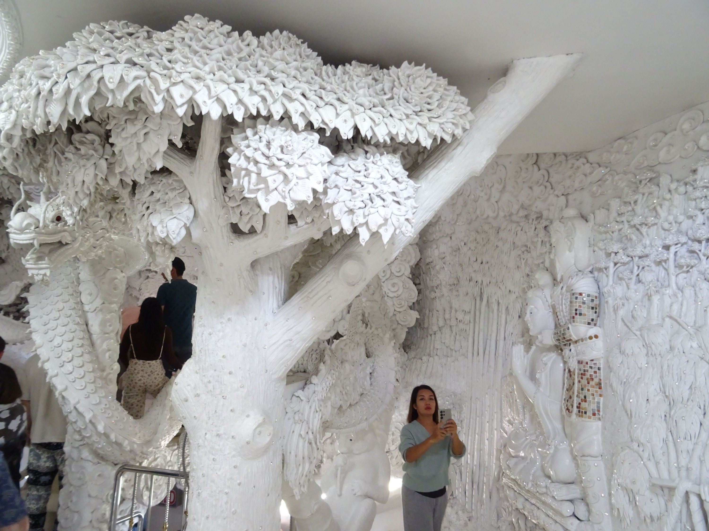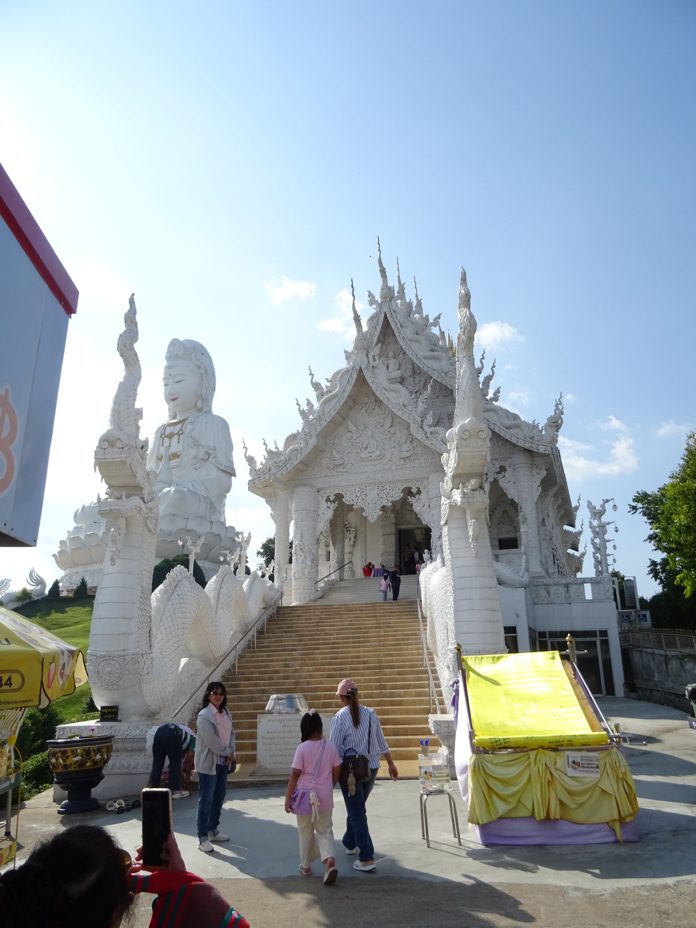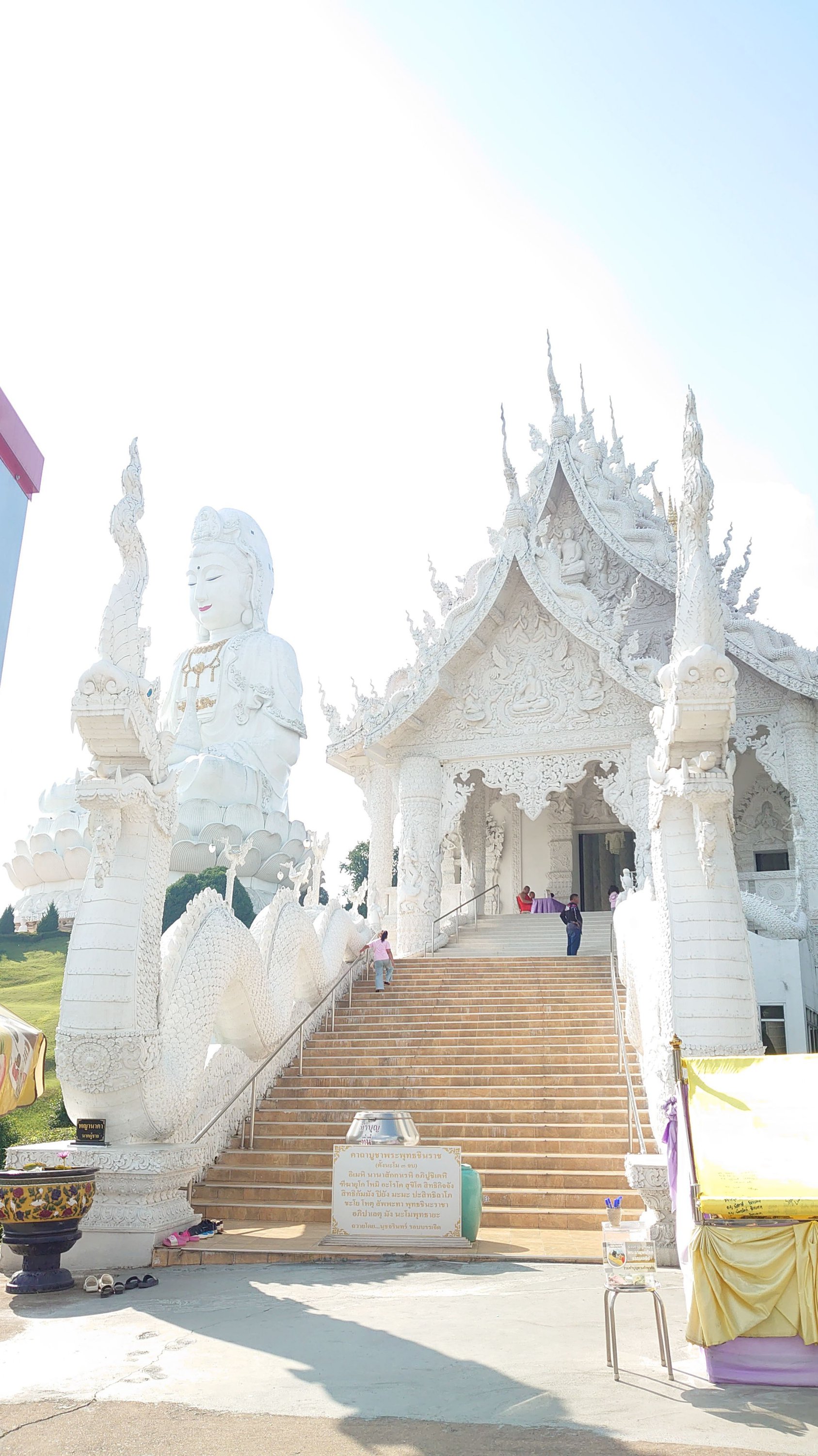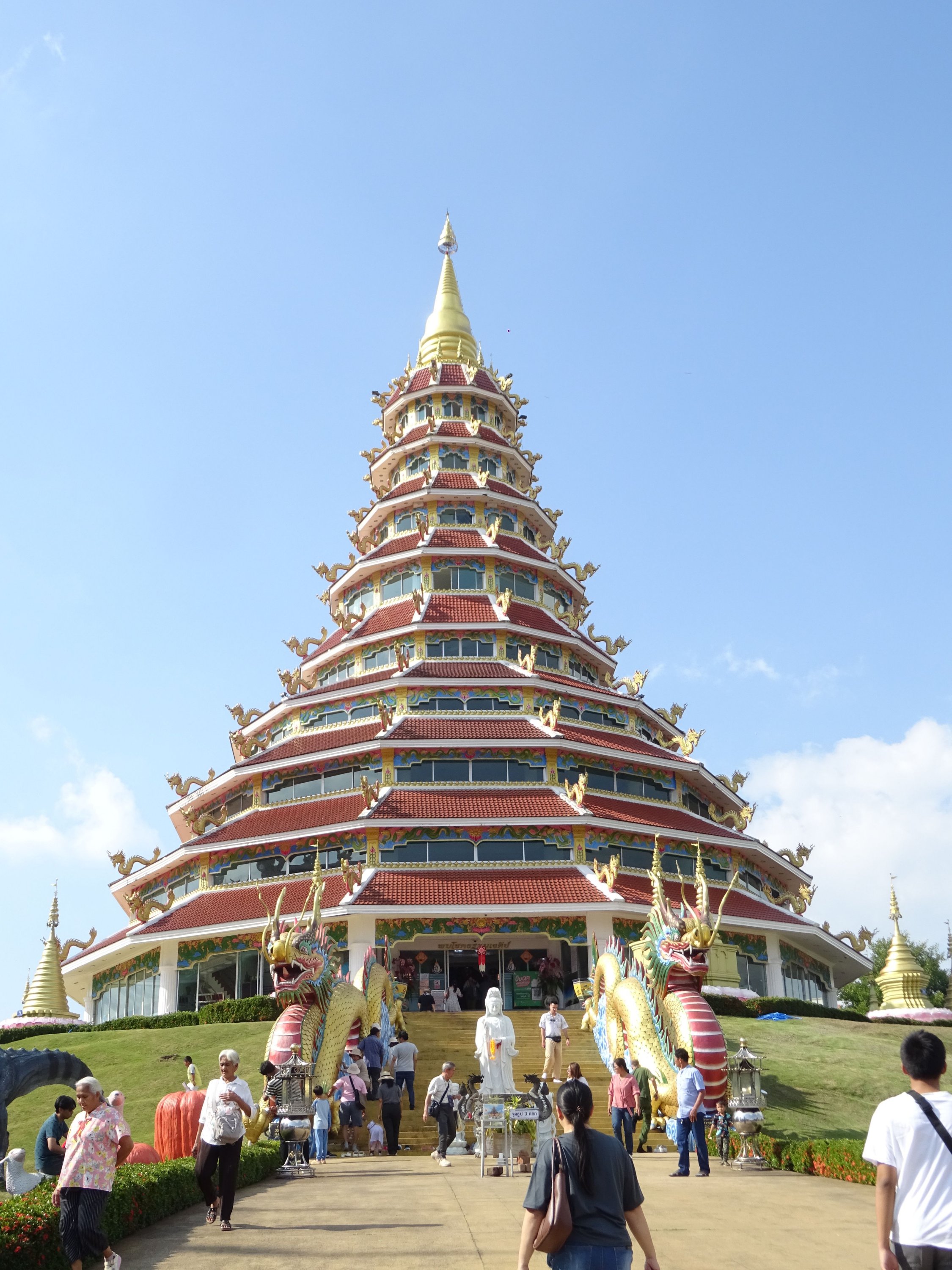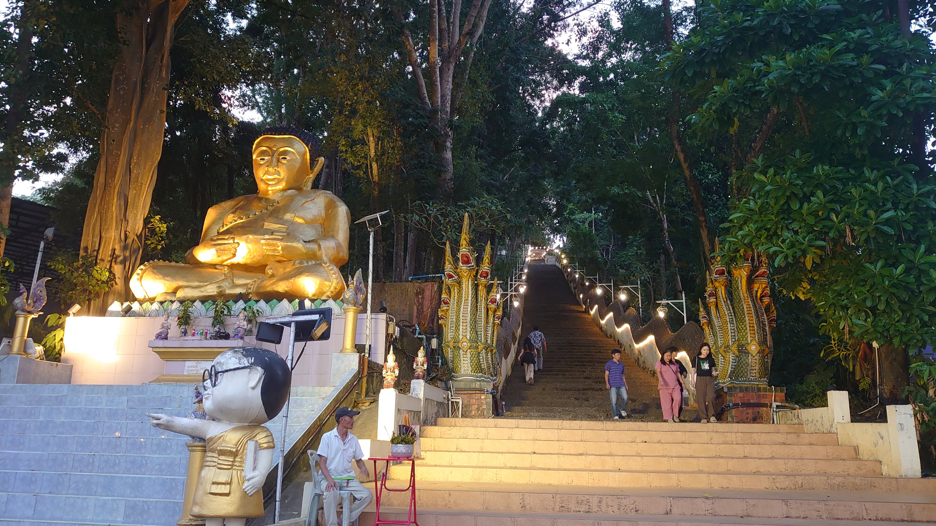 Ayant déjà visité Chiang Rai deux ans auparavant, je suis cette fois-ci sorti de la ville et visité les trois temples de la montagne. L'un deux m'a particulièrement marqué tellement je m'y sentais apaisé. J'y suis resté un moment et lorsque j'ai voulu faire une vidéo de l'ambiance la statue s'est mise à clignoter ! (Aucun souci avec l'appareil photo). Ça me rappelle la malédiction du bouddha que j'avais subi lors de mon voyage en Chine (projet CRIC Chine Russie Inde Cambodge de 2016 que vous avez découvert précédemment). Je suis ensuite monté au 26eme étage à l'intérieur même du bouddha pour regarder au travers de son oeil !