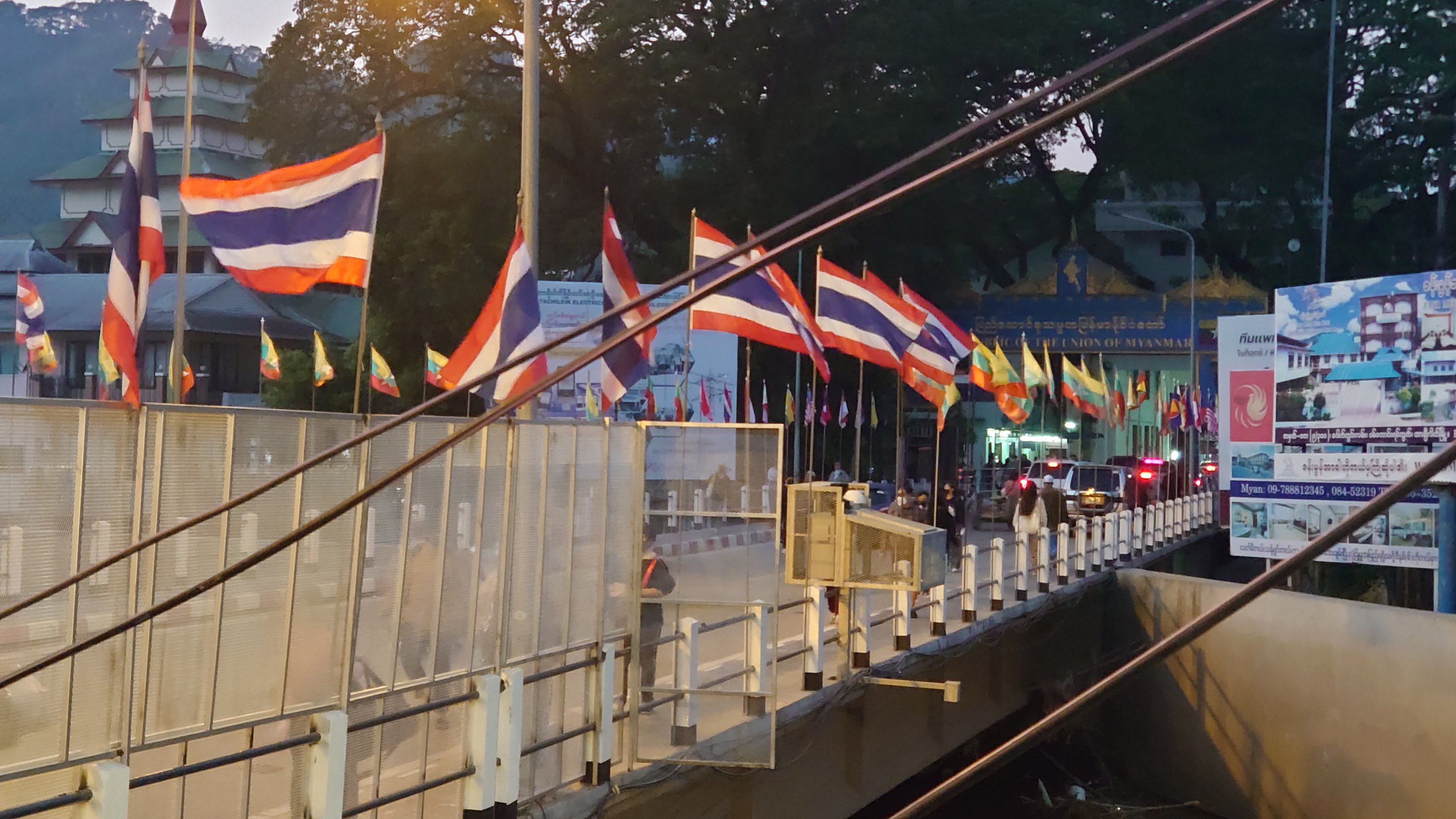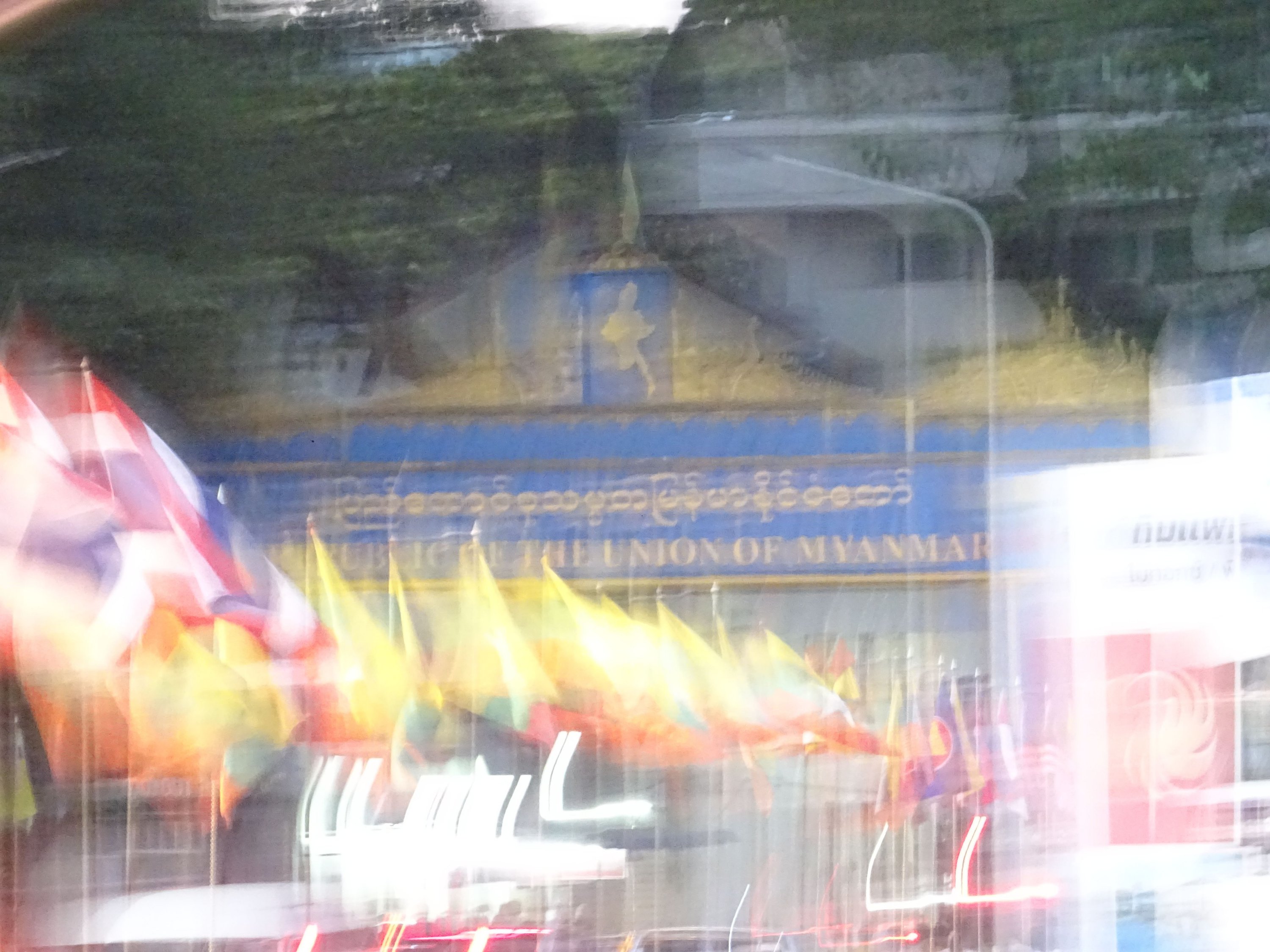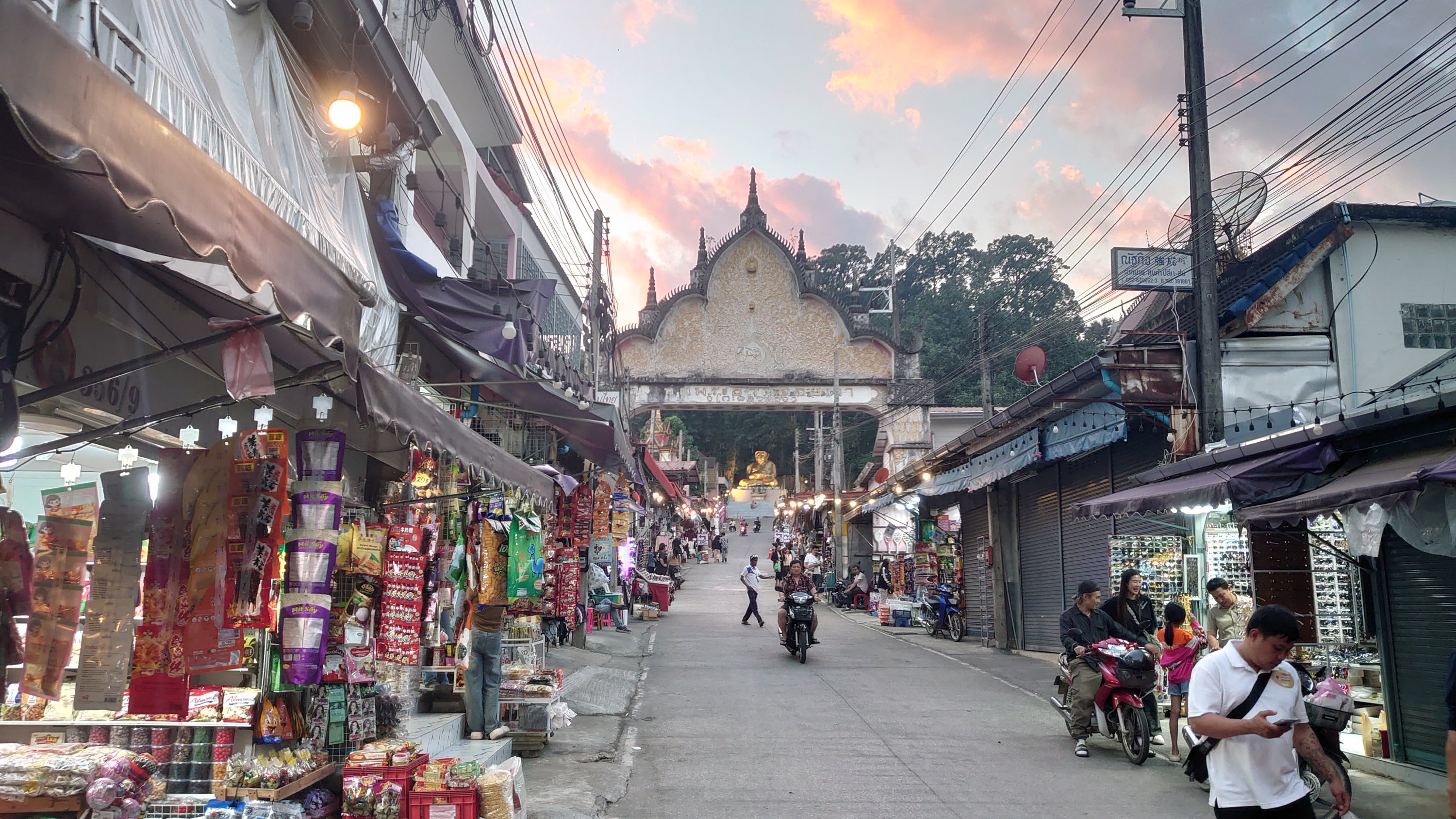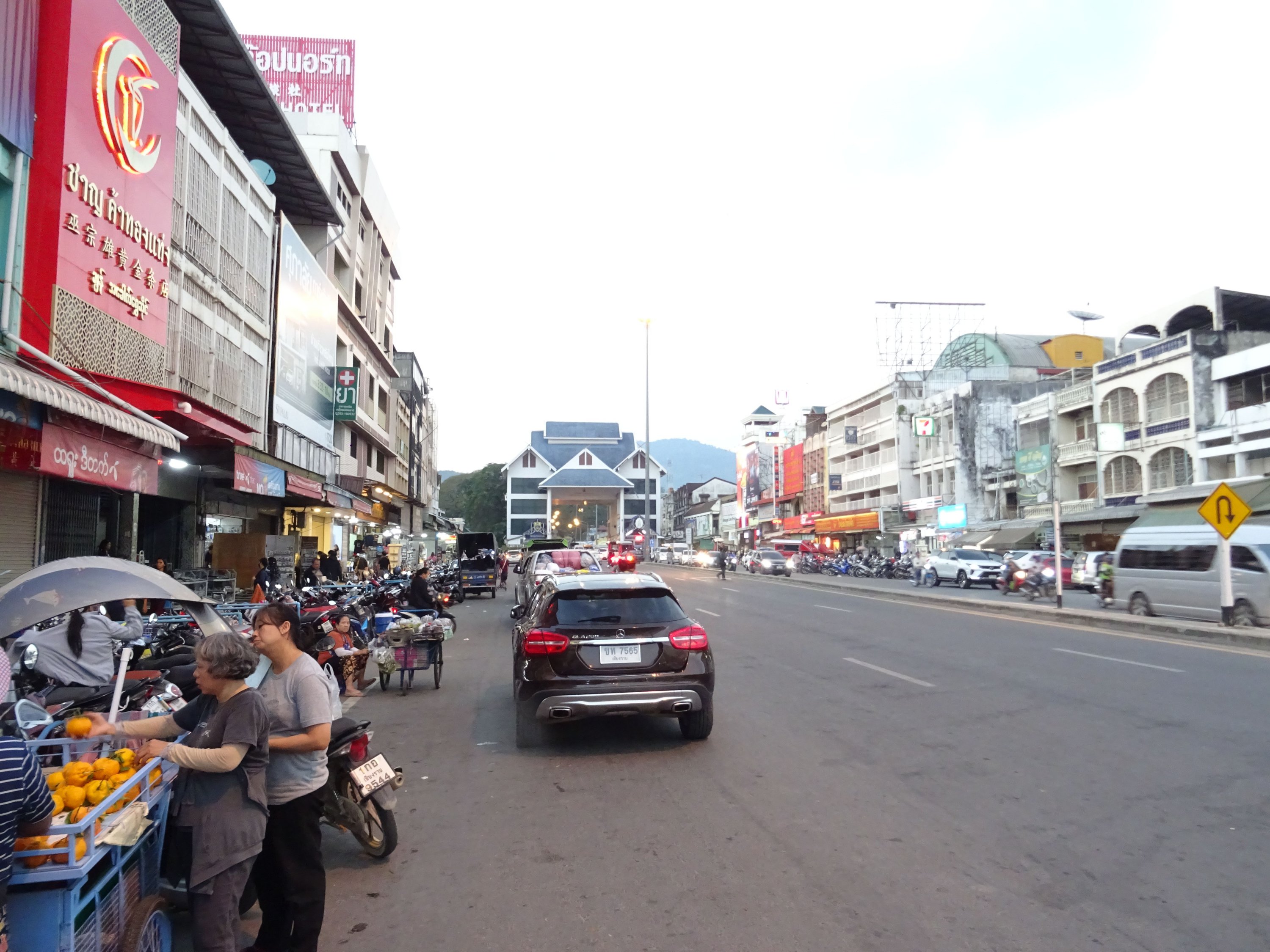 Puis je me suis dirigé au nord vers la frontière Birmane pour voir le point le plus au nord de la Thaïlande et même si je n'ai pas pu y entrer c'était impressionnant de voir le va et vient permanent qui s’y trouver (zone du triangle d'or). D'ailleurs je me suis même garé dans 'walking street' (cherchez l'erreur !)