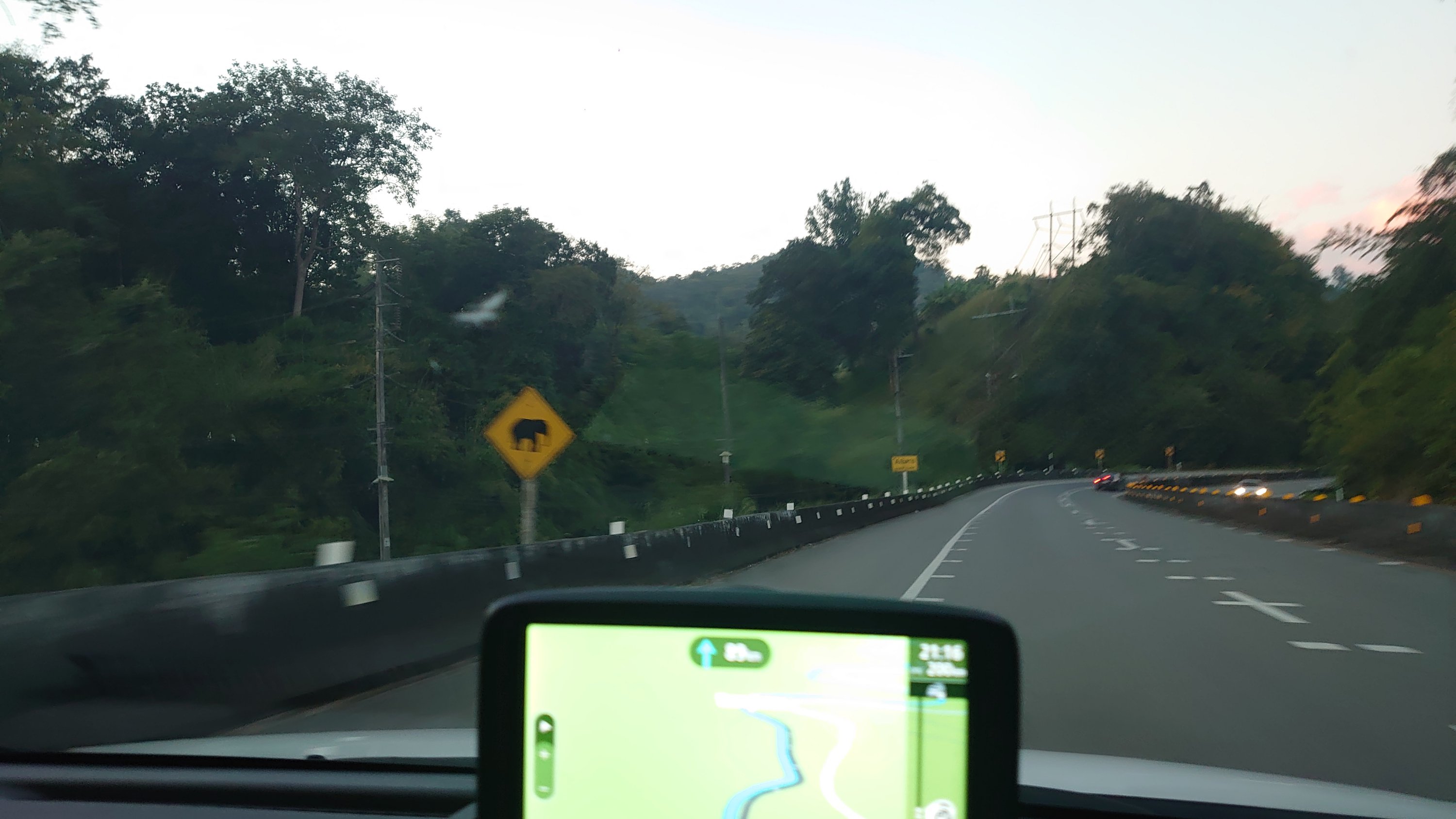 « Road Trip » cette fois qui commença par un réveil au bord de la piscine puis route de montagne de fou entre les demi-tours autorisés sur l'autoroute, les panneaux attention aux éléphants, les camions avec 7 mètres de paille, le GPS qui se perd (obligé de sortir la carte !) et la conduite à gauche, tout allait bien !