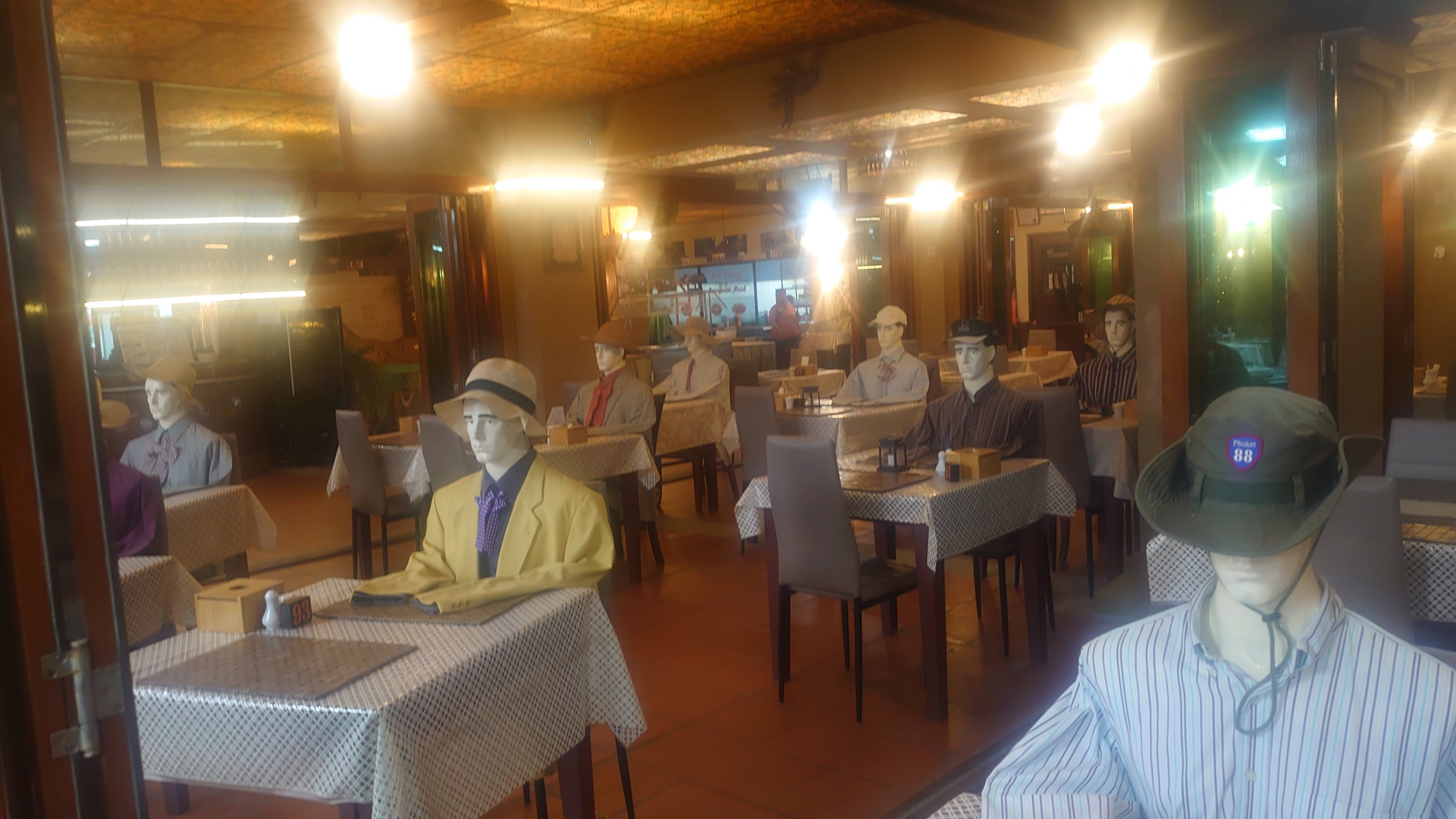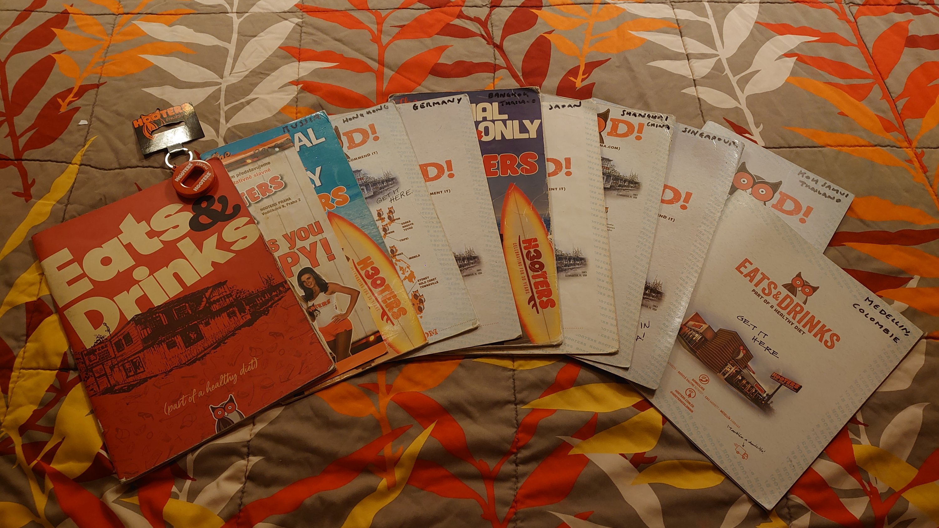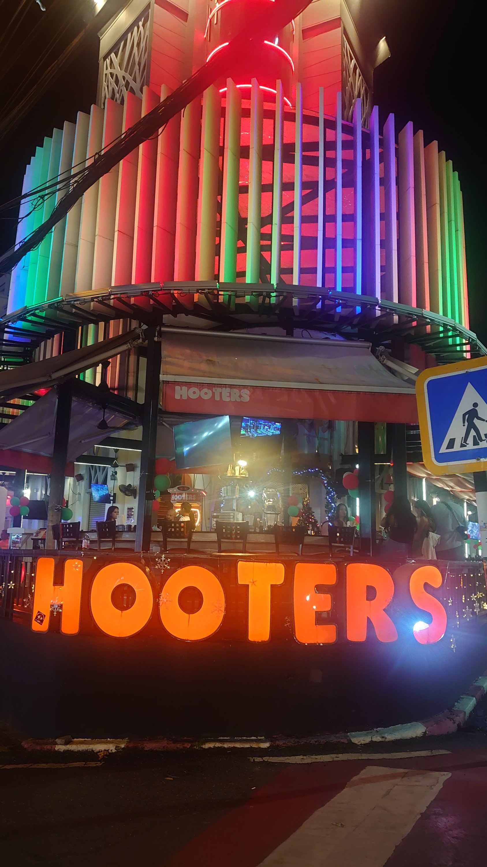 Phuket. Pas de chance hélas à Phuket où le bouddha de la montagne était en rénovation et où la nuit est tombée bien trop vite...sur une soirée encore bien agitée. Puis départ de Phuket après une soirée aux « Hooters » avec un menu de plus pour ma collection pour arriver à Pattaya dans la soirée.