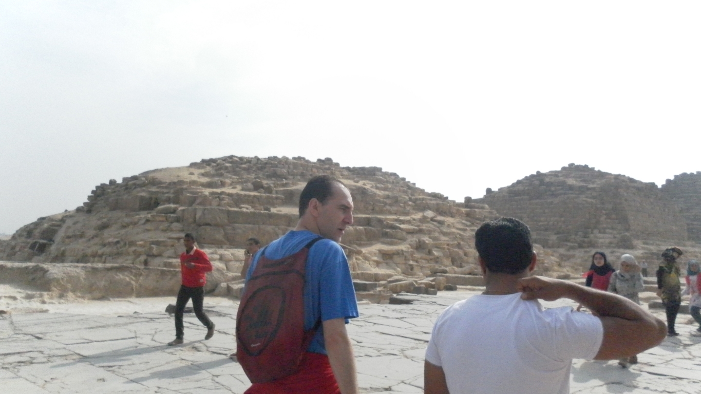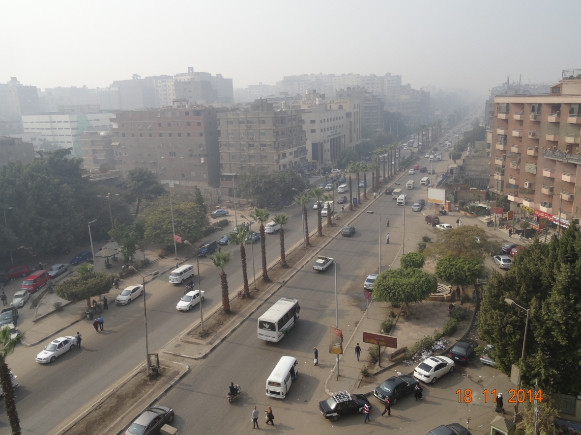 Cairo, sunrise. A flood of awesome cars, a teeming city, noisy ... and yet when one looks more closely to, single people, a small fruit market, a bakery that makes us taste his excellent biscuits handmade ... without forget the distance, in the fog, the three pyramids ...