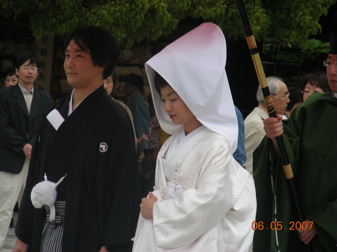 Harajuku, un jour de pluie. La takeshita Dori, l'une des rues principales, se voit traversée par des dizaines de parapluie abritant des japonais et japonaises qui ne pourront faire leur défilé de cosplay habituel non loin du Yoyogi Park sur le pont qui y mène. C'est donc vers le temple que nous décidâmes de nous abriter et assister, en cette malgré tout belle journée pluvieuse à un mariage dans le plus grand respect solennel, loin du mordernisme et du cosplay, paré des traditionnels kimonos aux couleurs toutes plus magnifiques les unes que les autres...