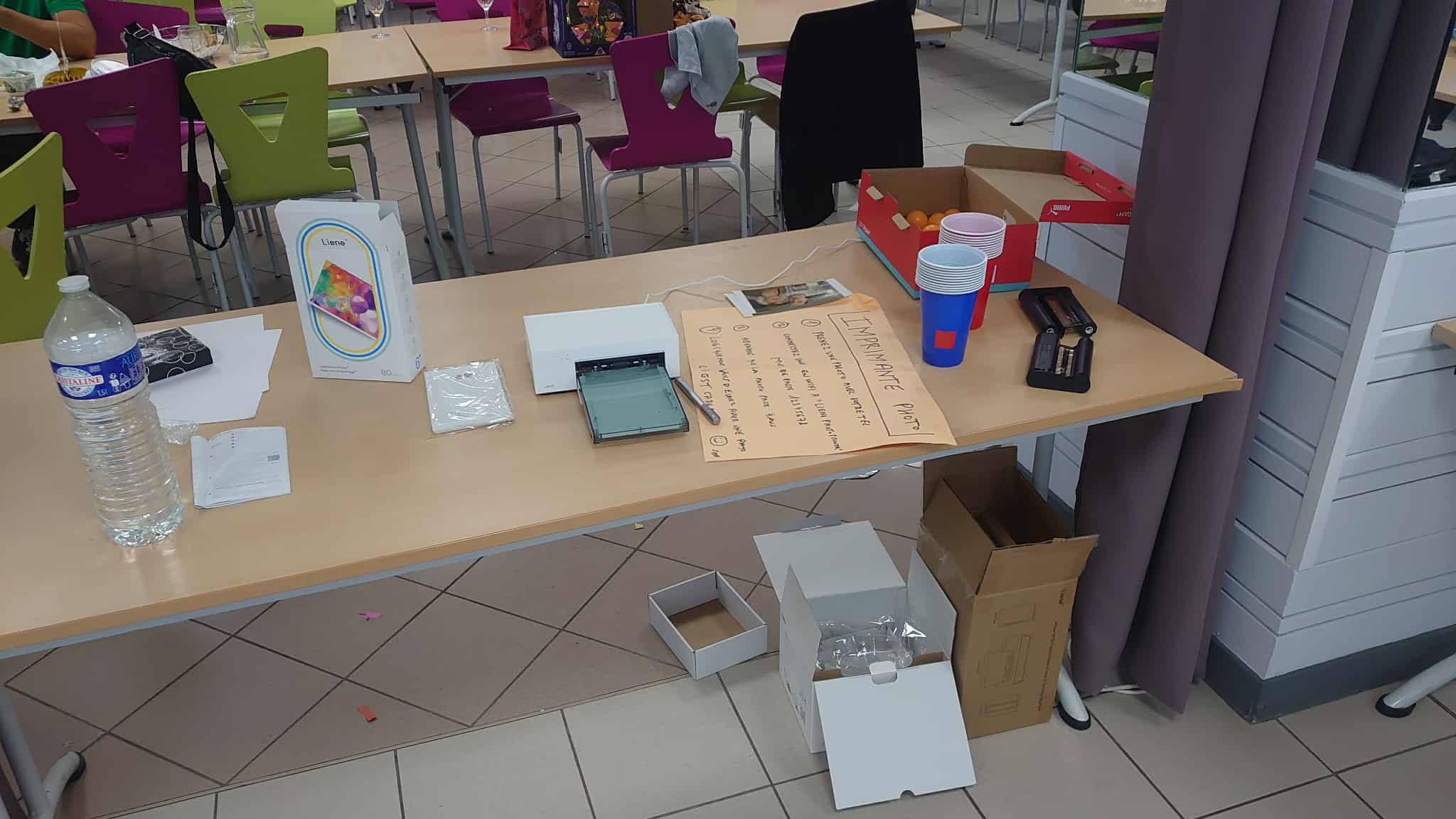 - un appareil photo et une imprimante photo où l'on pouvait se prendre en photo, la photo était directement imprimée et collée sur un cadré géant !